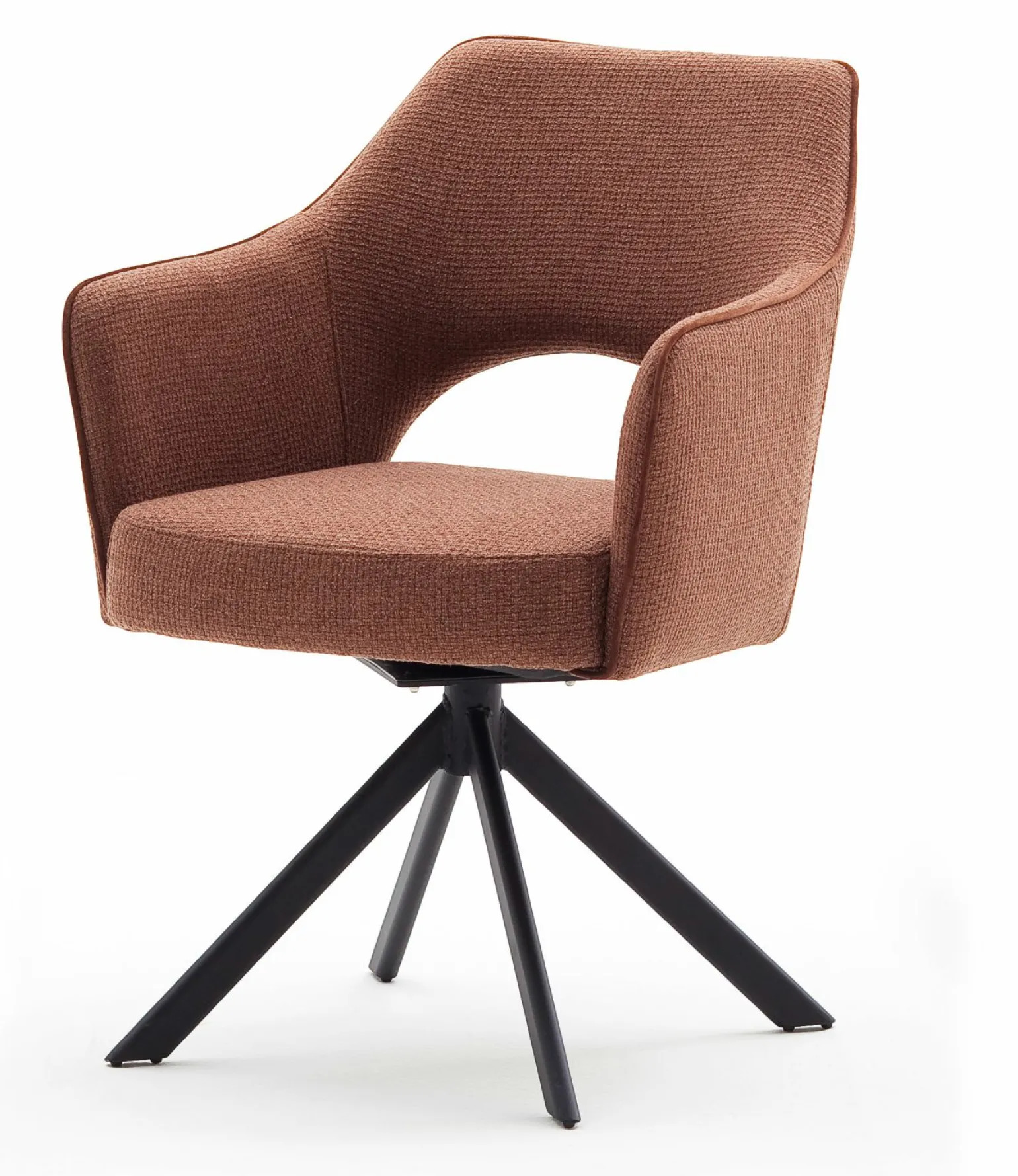 Entdecken Sie den charmanten Monala Armlehnstuhl im Vintage-Stil, der durch seine elegante braune Farbgebung und die hochwertige Polsterung besticht. Das Modell ist nicht nur optisch ein Highlight, sondern bietet mit einer Sitzhöhe von 49 cm und einer Sitztiefe von 46 cm besten Komfort. Gefertigt aus robustem Kunststoff und Kunstfaser, wird er durch ein stabiles 4-Fuß-Gestell aus schwarzem Metall ergänzt, das eine maximale Belastbarkeit von 120 kg gewährleistet. Die integrierten Armlehnen sorgen für zusätzlichen Komfort. Perfekt für stilvolle Wohnbereiche oder gemütliche Leseecken.