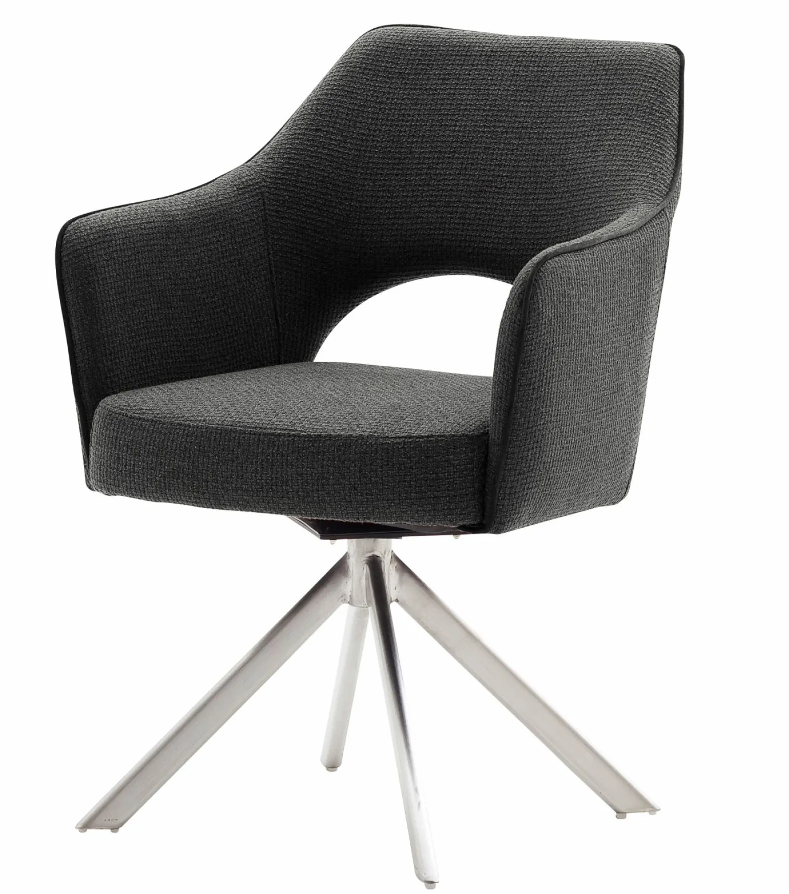 Der Monala Armlehnstuhl im Vintage-Stil verleiht Ihrem Raum eine zeitlose Eleganz. In einem dezenten Grauton gehalten, fügt sich dieser Stuhl nahtlos in diverse Einrichtungsstile ein. Die silberfarbenen Edelstahlfüße und das robuste Kunststoffmaterial garantieren Stabilität und Langlebigkeit. Der Stuhl hat eine komfortable Sitzhöhe von 49 cm und eine Sitztiefe von 46 cm, die durch die bequeme Polsterung ergänzt werden. Die Armlehnen bieten zusätzlichen Komfort, während das Gestell in der 4-Fuß-Variante eine maximale Belastbarkeit von 120 kg sicherstellt. Ein vielseitiges Möbelstück für jedes Zuhause.