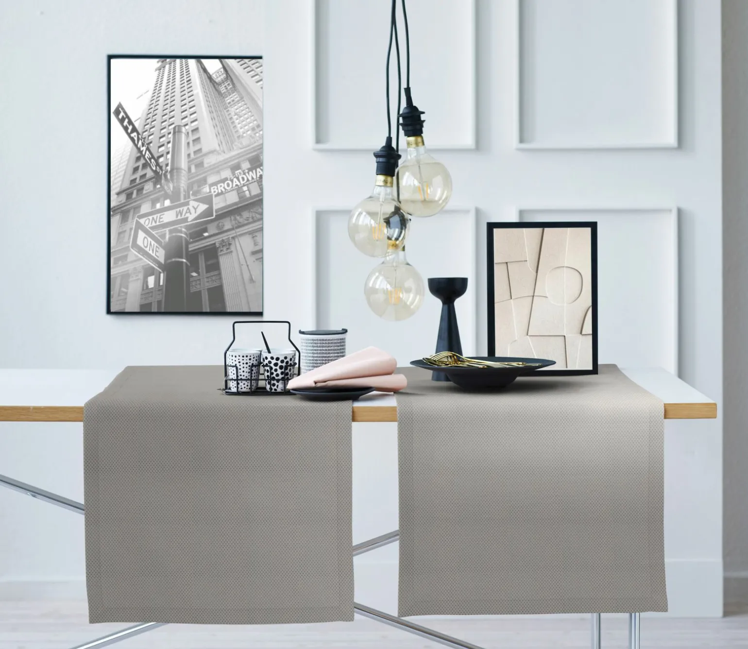Entdecken Sie den stilvollen Tischläufer Miles 88 grau, der Ihrem Tisch eine elegante Note verleiht. Mit einer Breite von 42 cm und einer Länge von 150 cm passt er perfekt auf viele Tischgrößen. Das hochwertige Material aus 100% Polyester sorgt nicht nur für eine ansprechende Optik, sondern auch für Langlebigkeit und einfache Pflege. Die graue Farbe fügt sich harmonisch in verschiedenste Einrichtungsstile ein und bietet eine neutrale Basis für kreative Tischdekorationen. Dieser Tischläufer ist ideal für den täglichen Gebrauch sowie für besondere Anlässe.