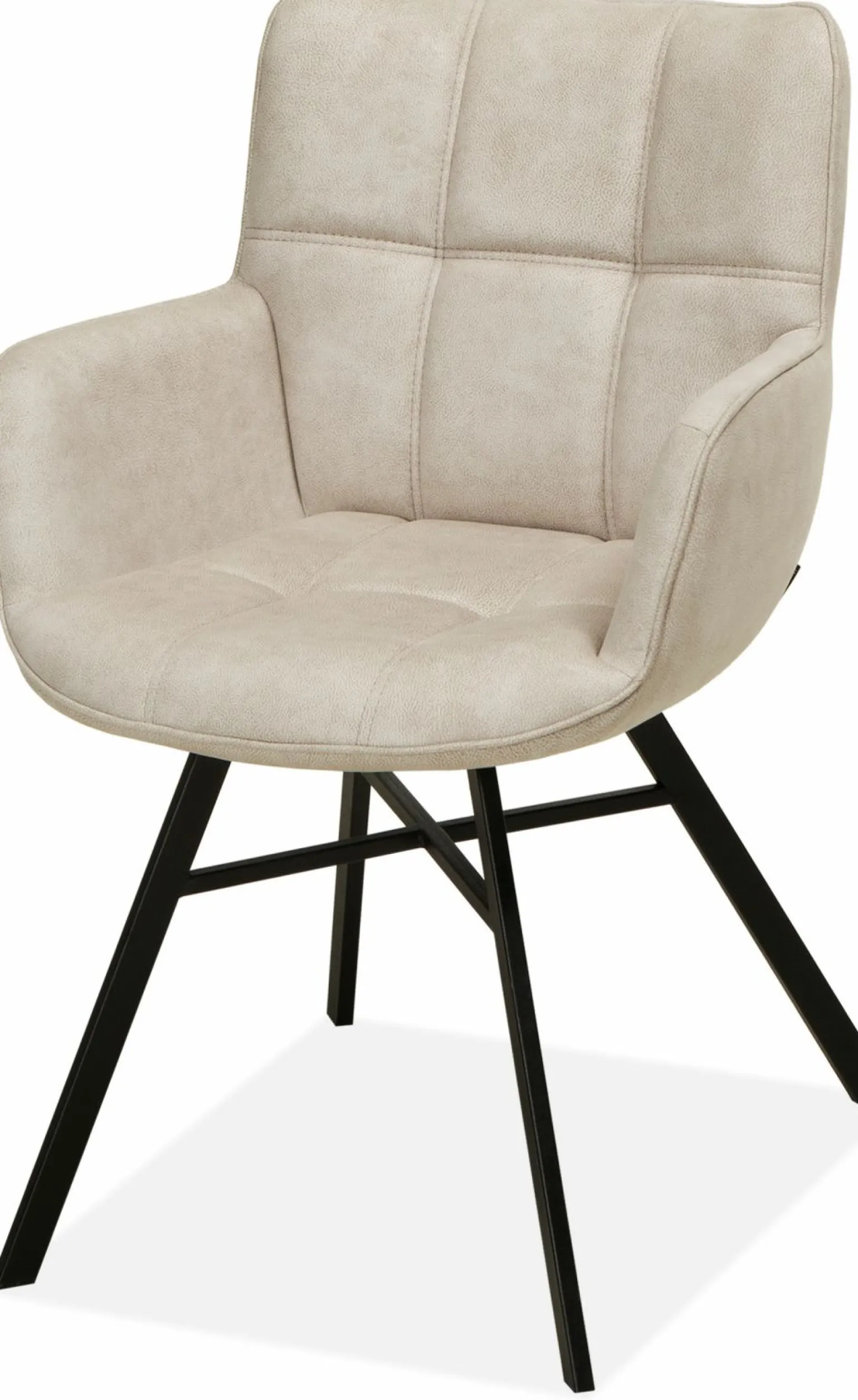 Der Marcon Armlehnstuhl in Beige kombiniert modernen Stil mit komfortabler Funktionalität. Die ansprechende Stoffpolsterung sorgt für ein bequemes Sitzgefühl, während die schwarz lackierten Metallfüße in 4-Fuß-Gestellvariante für Stabilität und Langlebigkeit garantieren. Mit einer Belastbarkeit von bis zu 120 kg ist dieser Stuhl sowohl robust als auch elegant. Die Armlehnen bieten zusätzlichen Komfort bei einer Sitzhöhe von 51 cm und einer Sitztiefe von 44 cm. Mit Maßen von 86 cm in der Höhe und 59 cm in der Breite passt dieser Stuhl perfekt in verschiedene Wohnumgebungen.