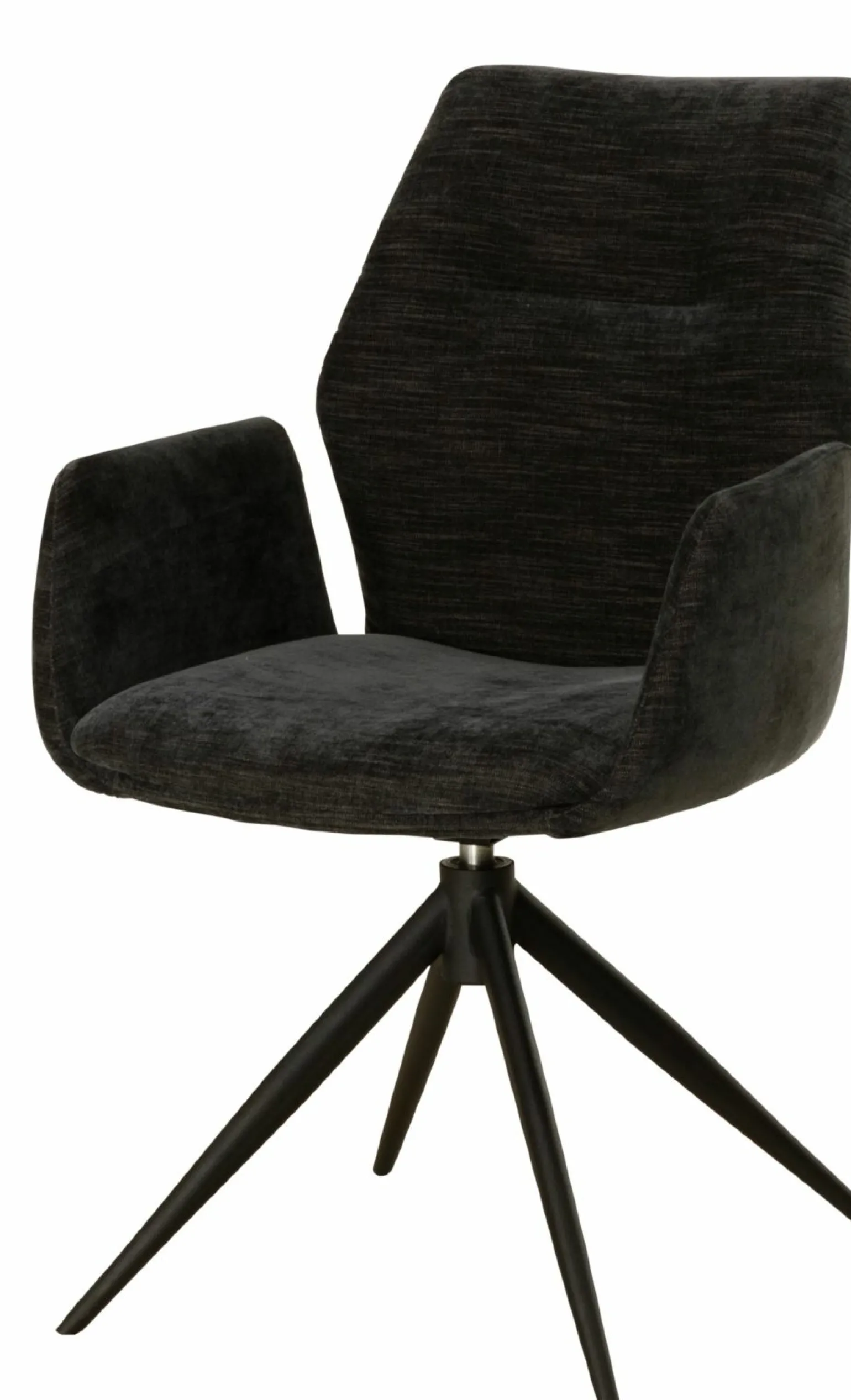 Der Puebla Armlehnstuhl in elegantem Schwarz vereint Komfort und Stil. Mit einer Höhe von 92 cm und einer Breite von 56 cm bietet er bequem Platz und sorgt mit einer Sitzhöhe von 49,5 cm und einer Sitztiefe von 46 cm für optimalen Sitzkomfort. Die weiche Polsterung aus Stoff lädt zum Verweilen ein, während das stabile Stativgestell aus schwarzem Metall eine Belastbarkeit von bis zu 100 kg garantiert. Die integrierten Armlehnen bieten zusätzliche Entspannung. Der Puebla Armlehnstuhl ist die perfekte Ergänzung für Ihr modernes Wohn- oder Esszimmer.