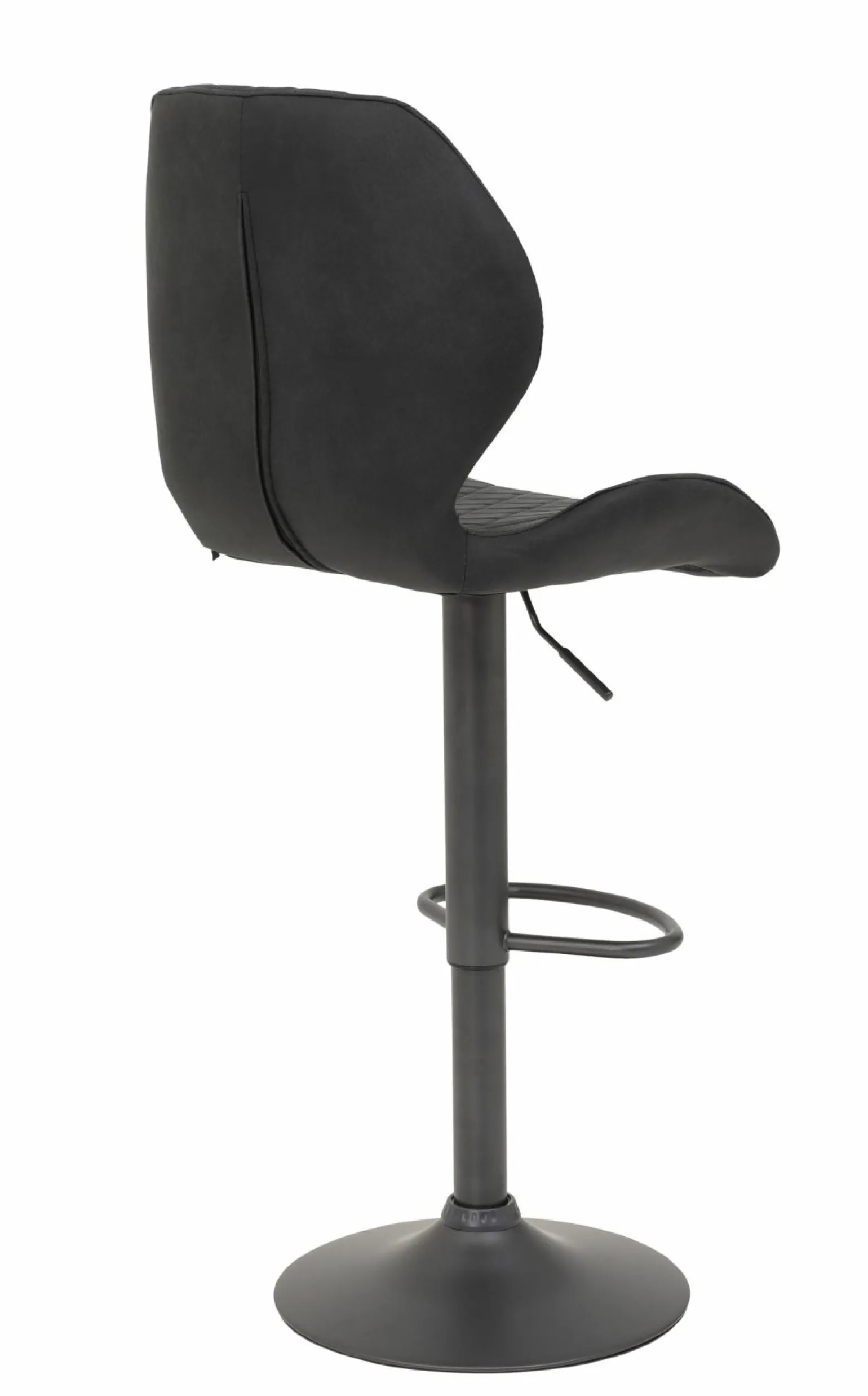 Erleben Sie den stilvollen und komfortablen Jessie Barhocker im Vintage-Design. Der graue Sitz in hochwertiger Lederoptik sorgt für ein elegantes Ambiente, während die Polsterung höchsten Sitzkomfort garantiert. Das Gestell aus stabilem Metall in passendem Grau und der Trompetenfuß bieten eine solide Basis. Dank der Höhenverstellbarkeit zwischen 96 cm und 117 cm kann der Barhocker flexibel an unterschiedliche Tresenhöhen angepasst werden. Mit einer Sitztiefe von 37 cm und einer Breite von 50 cm bietet dieser Hocker sowohl Stil als auch Funktionalität für Ihr Zuhause oder Ihre Bar.