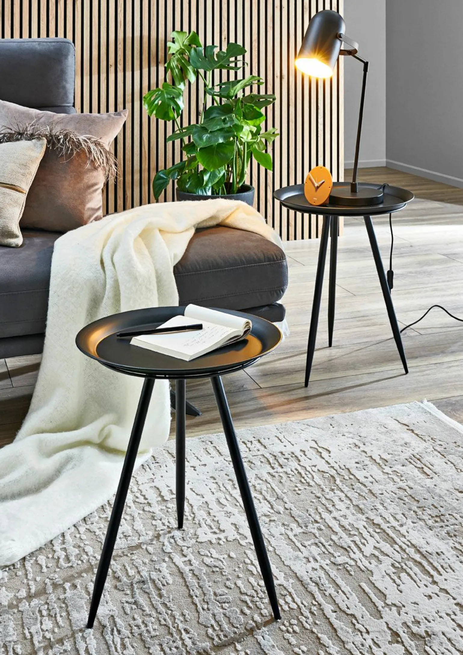 Der elegante Beistelltisch Hans 2 vereint modernes Design mit Funktionalität. Gefertigt aus hochwertigem Metall, überzeugt er durch seine robuste Bauweise und zeitlose Ästhetik. Mit einer Höhe von 54 cm und einem Durchmesser von 44 cm bietet er ausreichend Platz für Ihre Lieblingsdekorationen oder eine Tasse Kaffee. Die edle schwarze Farbe fügt sich nahtlos in jedes Wohnkonzept ein und verleiht Ihrem Raum einen Hauch von Eleganz. Perfekt als stilvolles Accessoire in Wohn- oder Schlafzimmer, bietet dieser Tisch sowohl praktische als auch dekorative Vorteile.