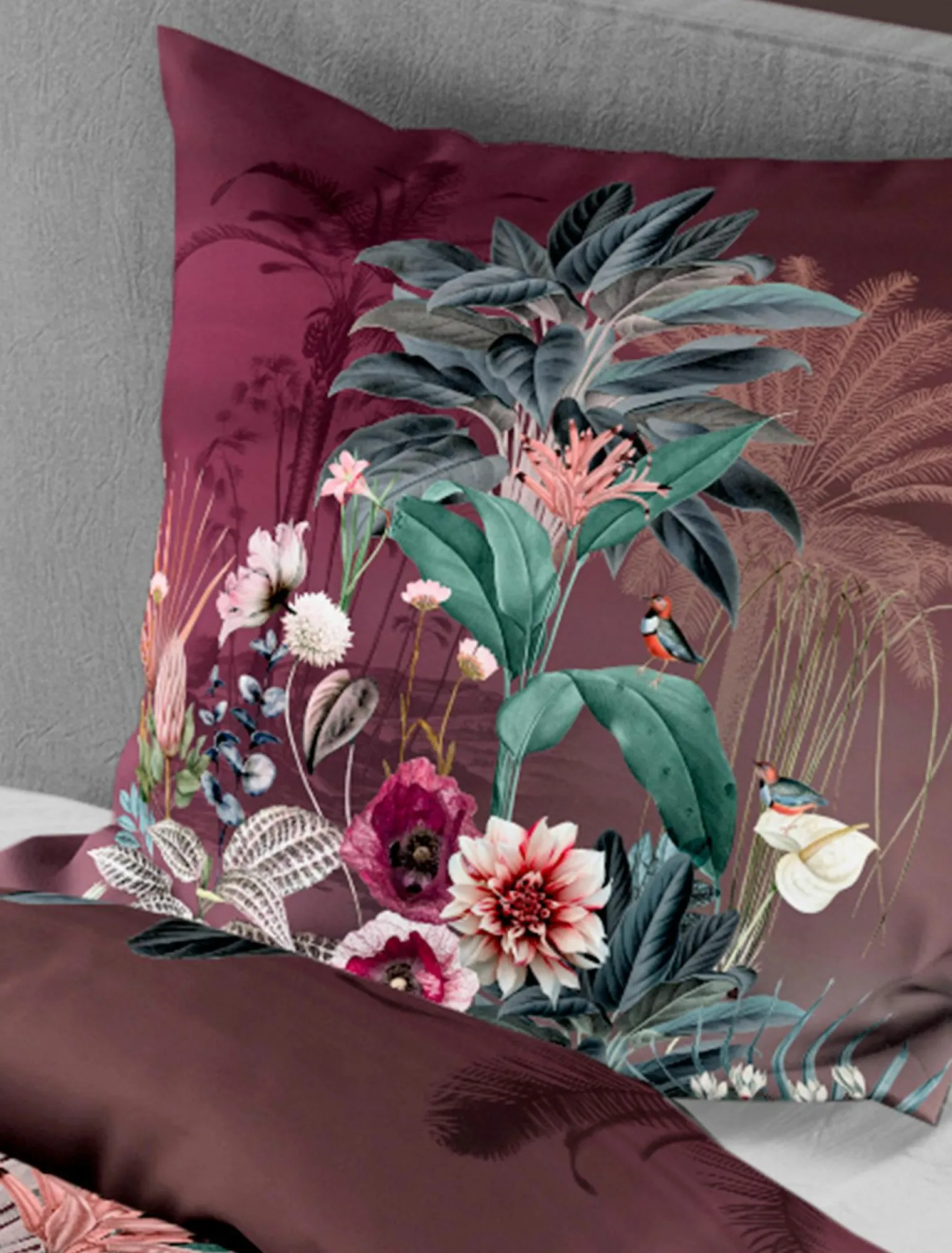 Blumen rubin Mako-Satin-Bettwäsche Baumwolle