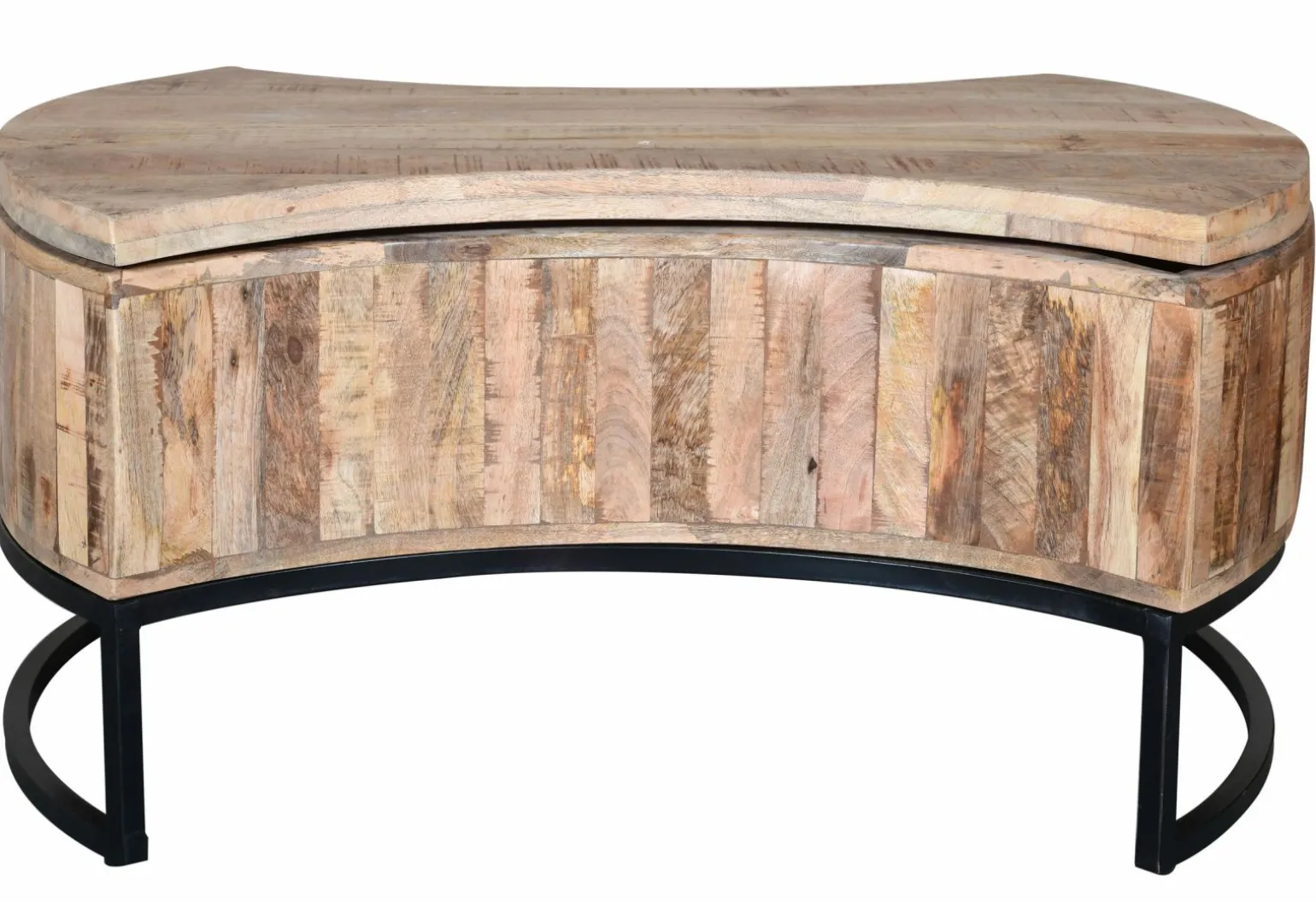 Dieser elegante Couchtisch mit einer ovalen Form und einer beeindruckenden Höhe von 46 cm ist ein echter Hingucker in jedem Wohnraum. Mit einer Breite von 100 cm und einer Tiefe von 70 cm bietet er ausreichend Platz für Ihre Lieblingsgegenstände. Die massive Holzplatte verleiht dem Tisch eine natürliche Eleganz, während das schwarze Metallgestell für einen modernen Touch sorgt. Der Tisch ist nicht nur stilvoll, sondern auch robust und langlebig. Er fügt sich nahtlos in verschiedene Einrichtungsstile ein und wird zum Mittelpunkt Ihrer Wohnzimmereinrichtung.