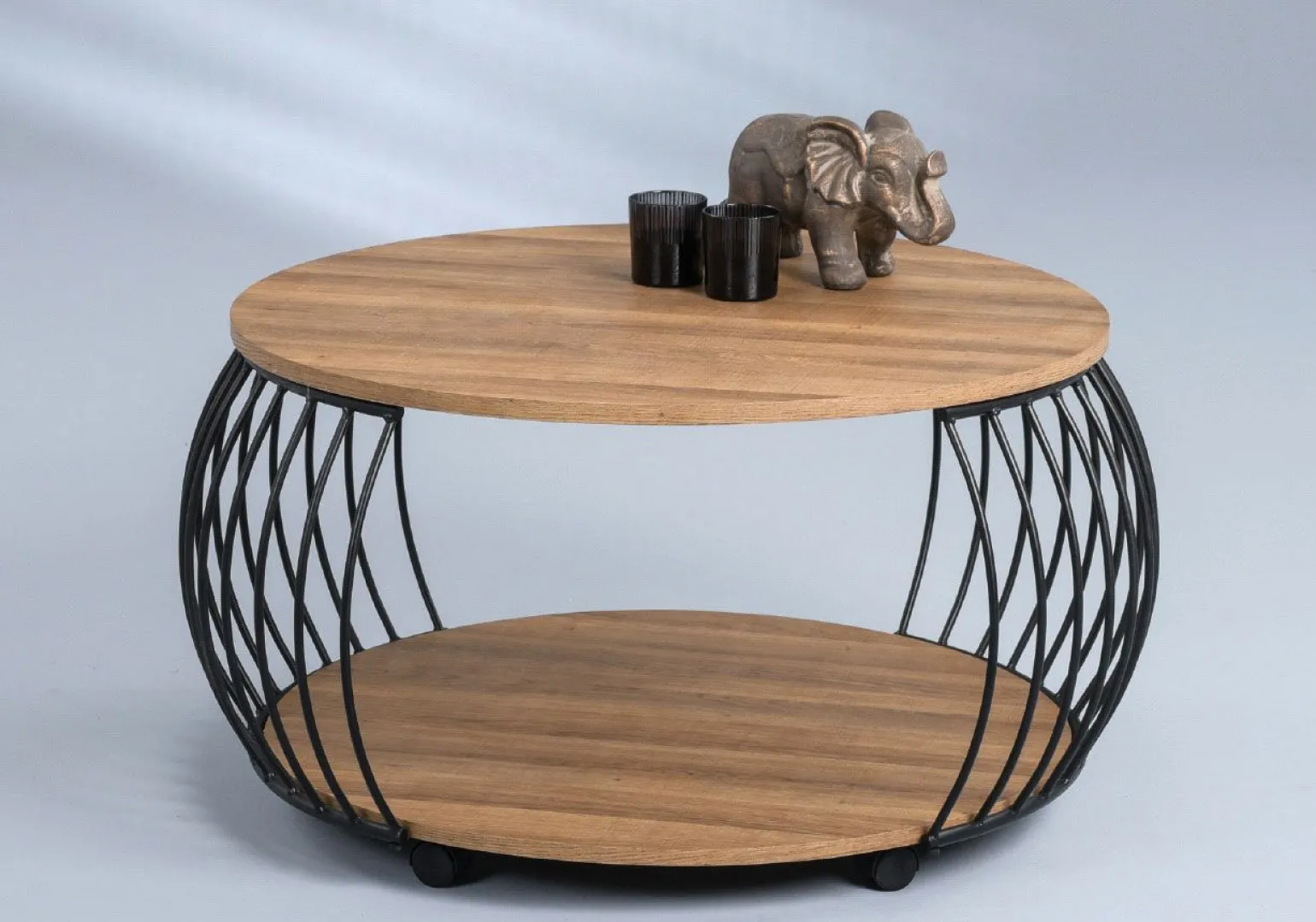 Der Olymp 2 Couchtisch ist die perfekte Ergänzung für Ihr modernes Wohnzimmer. Mit seiner runden Form und einem Durchmesser von 80 cm bietet er ausreichend Platz für Ihre täglichen Utensilien. Die Tischplatte aus hochwertigem Holzdekor in einem warmen Braunton sorgt für eine natürliche Optik, während das schwarze Metallgestell dem Tisch einen stilvollen und stabilen Charakter verleiht. Mit einer Höhe von 47 cm ist er ideal zum Entspannen und bietet eine maximale Belastbarkeit von 15 kg. Erleben Sie die Kombination aus Funktionalität und modernem Design.