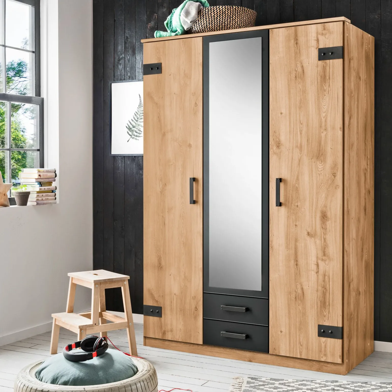 Der Drehtürenkombischrank Yori T25 484 mit einer beeindruckenden Höhe von 199 cm ist die ideale Lösung für alle, die sowohl Funktionalität als auch Stil in ihrem Zuhause vereinen möchten. Mit drei großzügigen Türen bietet dieser Schrank ausreichend Platz, um Ihre Kleidung und Accessoires ordentlich zu verstauen. Das schlichte, moderne Design fügt sich nahtlos in jedes Raumkonzept ein. Ob im Schlafzimmer oder Ankleidezimmer, dieser Schrank sorgt für Ordnung und einen Hauch von Eleganz. Robuste Materialien und eine sorgfältige Verarbeitung garantieren Langlebigkeit und Stabilität, sodass Sie langfristig Freude daran haben werden.