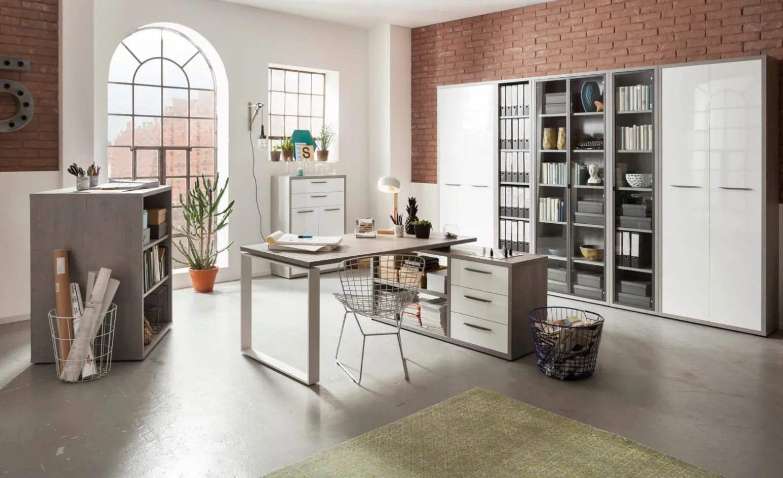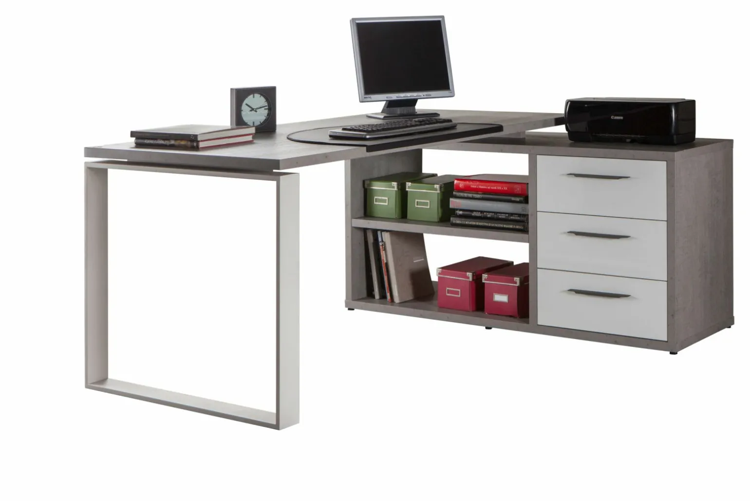 Eck-Schreibtisch grauweiß