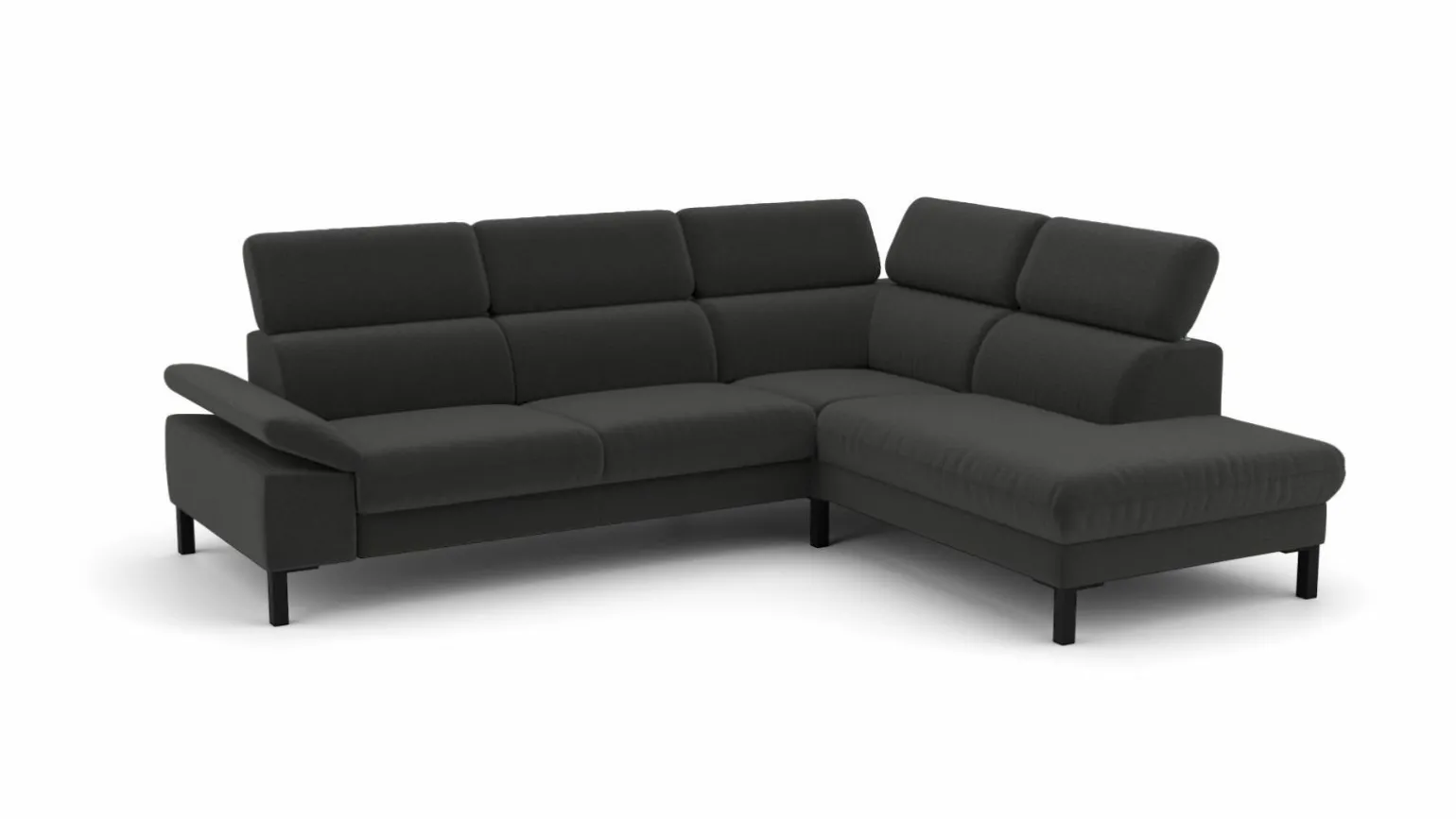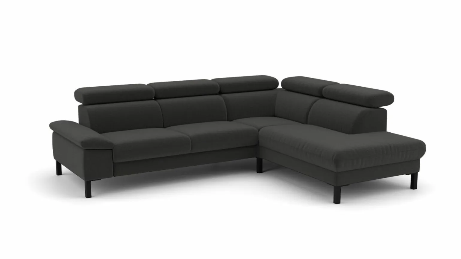 Erleben Sie modernen Komfort und Stil mit der Eckgarnitur Elke in elegantem Grau. Diese großzügige Sitzgelegenheit bietet Platz für vier Personen und wird zum Mittelpunkt Ihres Wohnzimmers. Der hochwertige Stoff sorgt für ein angenehmes Sitzgefühl, während die robuste Metallkonstruktion der Füße Stabilität und Langlebigkeit gewährleistet. Die Sitzhöhe von 46 cm und die durchdachte Gestaltung mit Echtrücken machen sie zur idealen Wahl für entspannte Stunden. Mit einer Breite von 272 cm und einer Tiefe von 217 cm passt sie perfekt in moderne Wohnkonzepte, ohne aufdringlich zu wirken.