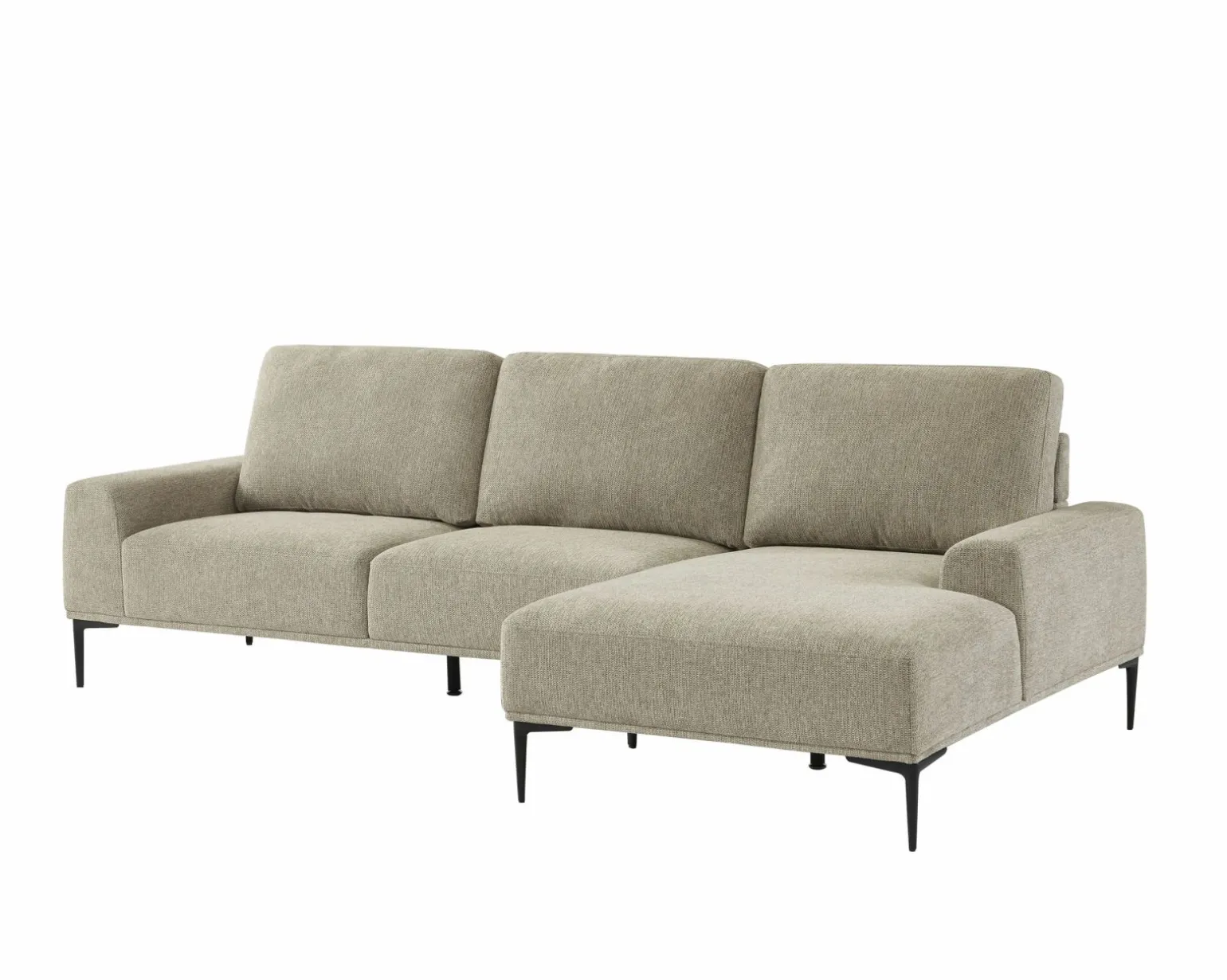 Erleben Sie zeitlose Eleganz mit der Eckgarnitur TM-240993-R. Diese stilvolle rechte Eckgarnitur in einem warmen Braunton ist die perfekte Ergänzung für jedes Wohnzimmer. Mit einer großzügigen Breite von 268 cm und einer Tiefe von 138 cm bietet sie ausreichend Platz für entspannte Stunden. Der hochwertige Stoff sorgt für ein angenehmes Sitzgefühl, während das robuste Metallgestell der Füße Stabilität und Langlebigkeit garantiert. Die Sitzhöhe von 44 cm und die Sitztiefe von 51 cm bieten optimalen Komfort. Verleihen Sie Ihrem Raum einen Hauch von Luxus und Funktionalität.