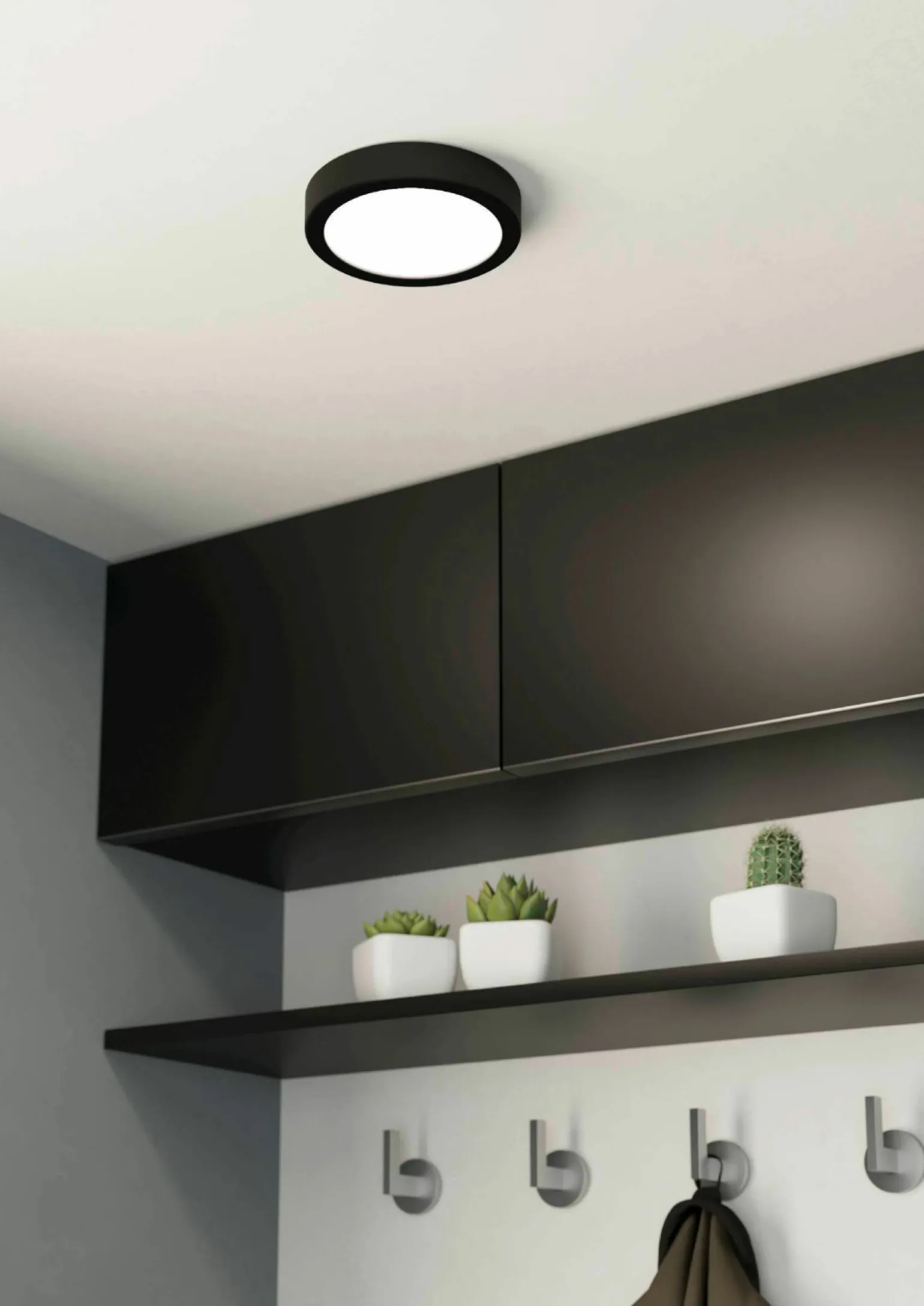 Entdecken Sie die elegante Fueva LED-Aufbauleuchte, die mit ihrem modernen, runden Design in stilvollem Schwarz überzeugt. Mit einem Durchmesser von 16 cm und einer Höhe von 2,8 cm fügt sie sich nahtlos in jede Raumgestaltung ein. Die hochwertige Verarbeitung aus Metall garantiert nicht nur Langlebigkeit, sondern auch eine ansprechende Optik. Diese einflammige Leuchte bietet eine effiziente und gleichmäßige Beleuchtung, ideal für verschiedene Wohnbereiche. Das minimalistische Design macht sie zu einem vielseitigen Element für zeitgemäße Interieurs. Setzen Sie stimmungsvolle Akzente und profitieren Sie von energieeffizienter LED-Technologie.