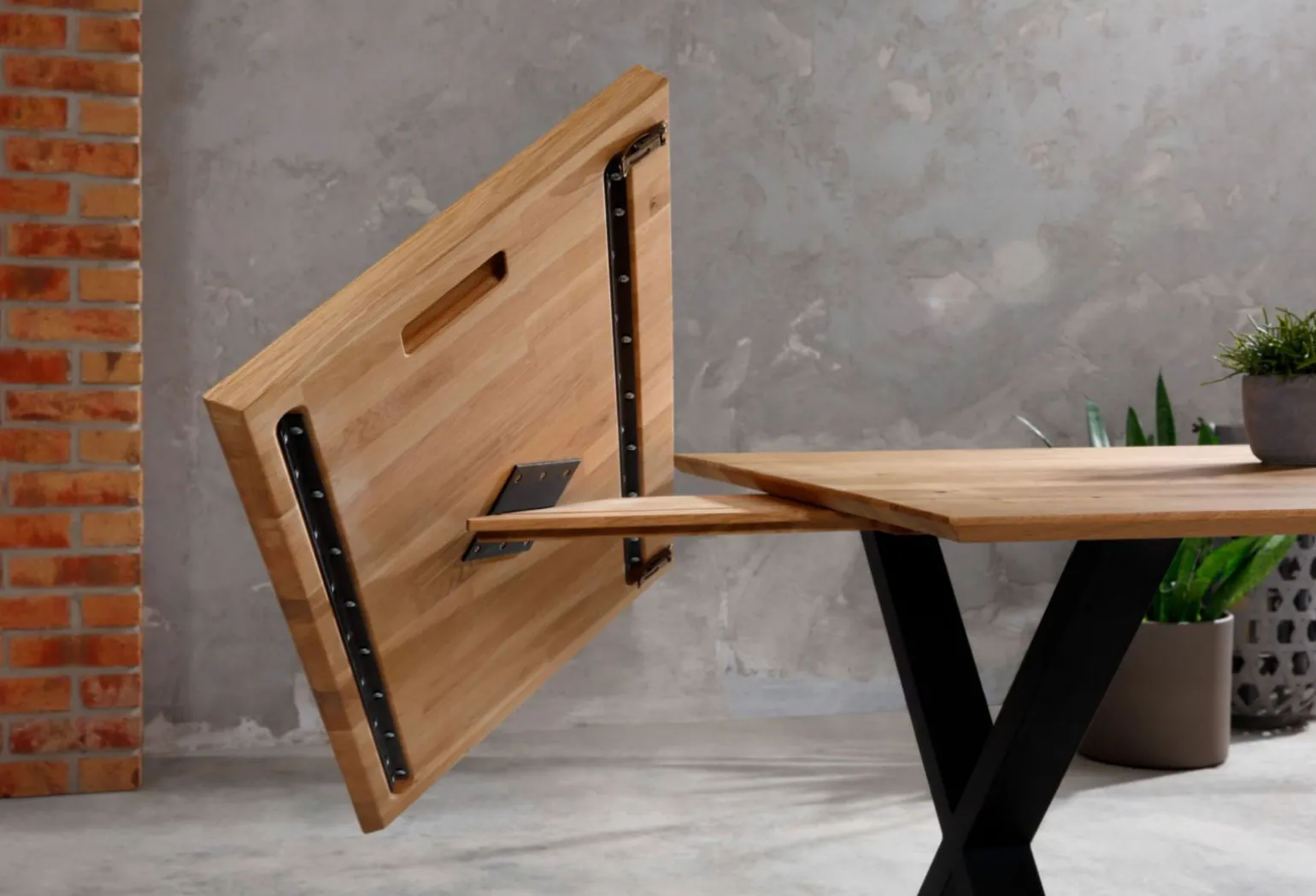 Der Ilana Esstisch beeindruckt mit seinem modernen Design und bietet dank seiner ausziehbaren Funktion maximale Flexibilität. Die massive Holzplatte in elegantem Braun ruht auf einem stabilen Gestell in X-Form aus schwarzem Metall. Mit einer Höhe von 75 cm und einer Breite von 140 cm, die durch den innovativen Rotationsauszug auf bis zu 190 cm erweitert werden kann, passt dieser Tisch perfekt in jede Umgebung. Die Tiefe von 90 cm sorgt für ausreichend Platz, um gesellige Abende komfortabel zu gestalten. Der Ilana Esstisch vereint Funktionalität und Stil auf höchstem Niveau.