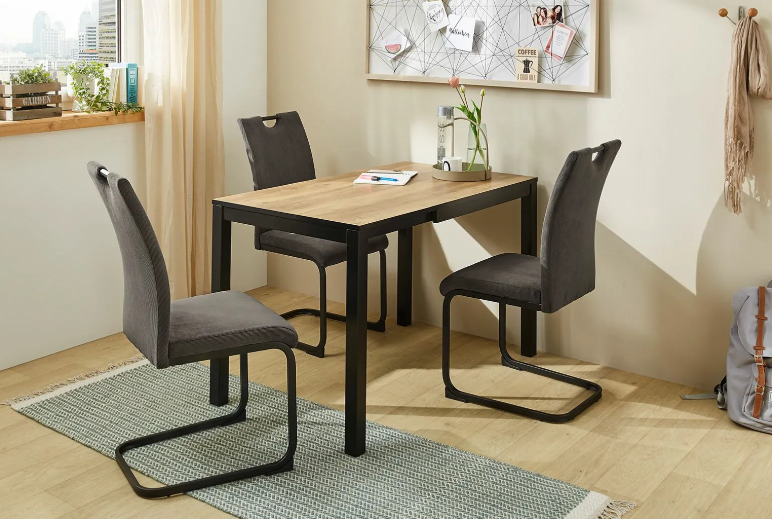 Der ausziehbare Esstisch Rudolf bringt Eleganz und Funktionalität in Ihr Esszimmer. Mit seiner braunen, viereckigen Tischplatte aus Holzdekor und dem stabilen schwarzen 4-Fuß-Gestell aus Metall bietet er sowohl Stil als auch Stabilität. Die Tischplatte kann bei Bedarf durch Einlegeplatte(n) verlängert werden, sodass Sie flexibel auf zusätzliche Gäste reagieren können. Mit einer Höhe von 76 cm und einer Breite von 80 cm passt dieser Esstisch perfekt in verschiedene Raumkonzepte und bietet genügend Platz für gesellige Runden oder gemütliche Abendessen.