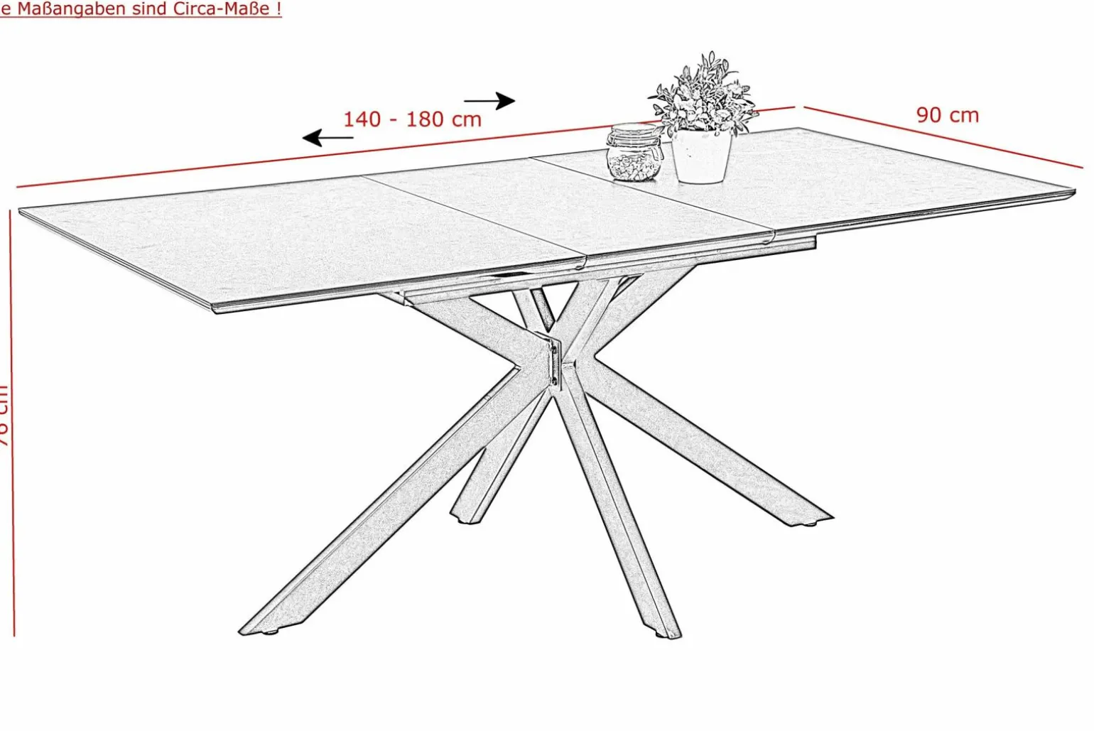 Entdecken Sie den eleganten Esstisch Modell, der Funktionalität und Stil perfekt vereint. Mit seiner ausziehbaren Tischplatte passt er sich flexibel Ihren Bedürfnissen an und bietet eine Breite von 140 bis 180 cm. Das robuste Gestell in X-Form aus grauem Metall sorgt für Stabilität und verleiht dem Tisch eine moderne Note. Die Tischplatte aus schwarzem Glas ergänzt das edle Design und macht ihn zu einem Blickfang in jedem Esszimmer. Mit einer Höhe von 76 cm und einer Tiefe von 90 cm ist dieser Tisch die ideale Wahl für stilbewusste Haushalte.
