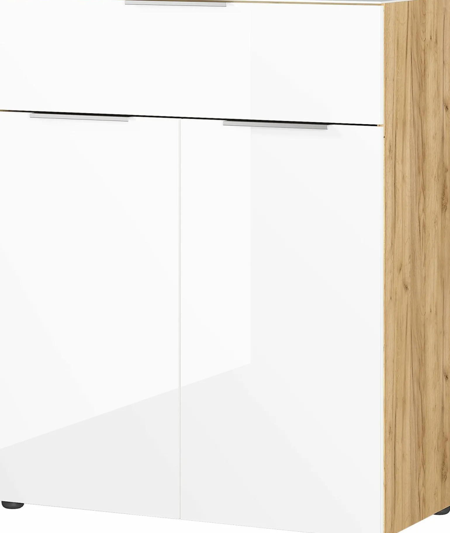 Die elegante Kommode Oakland verleiht jedem Raum einen Hauch von Stil und Funktionalität. Mit einer Höhe von 102 cm, einer Breite von 83 cm und einer Tiefe von 42 cm bietet sie ausreichend Stauraum und passt perfekt in verschiedenste Wohnbereiche. Die Kombination aus brauner und weißer Farbe harmoniert wunderbar mit dem hochwertigen Glasmaterial, das für eine moderne und zugleich zeitlose Optik sorgt. Diese Kommode ist ideal, um Ihre Wohnaccessoires stilvoll zu präsentieren oder um alltägliche Gegenstände ordentlich zu verstauen.