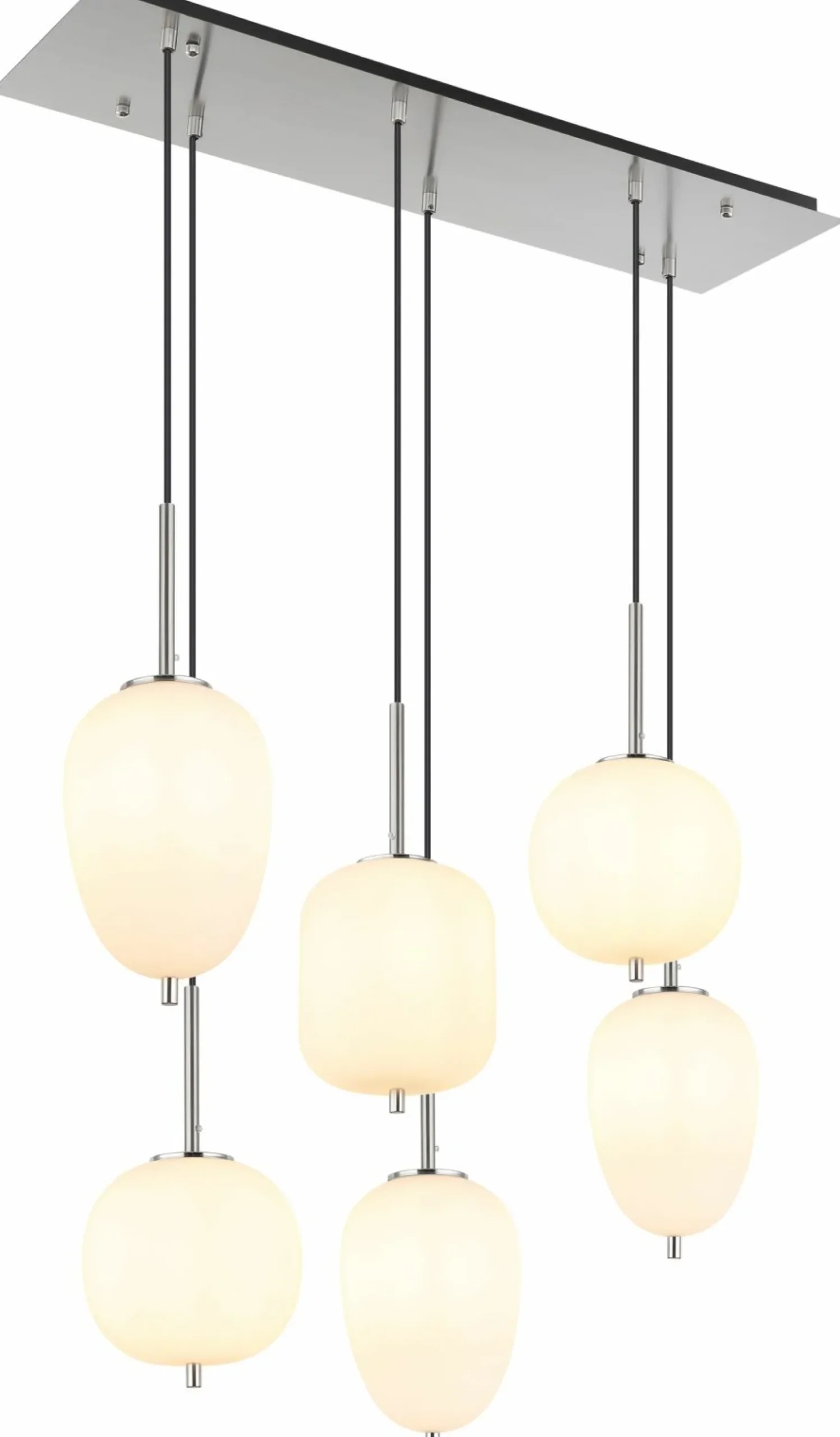 Entdecken Sie die elegante LED-Pendelleuchte Blacky, die mit ihrem modernen Design und hochwertigen Materialien überzeugt. Diese Leuchte kombiniert stilvolles Glas mit einer beeindruckenden silberfarbenen und goldfarbenen Optik, um jedem Raum eine raffinierte Note zu verleihen. Mit einer Höhe von 120 cm, einer Breite von 34 cm und einer Tiefe von 80 cm passt sie sich perfekt an unterschiedliche Raumgrößen an. Die sechs Lichtquellen sorgen für eine gleichmäßige und angenehme Beleuchtung, die sowohl funktional als auch dekorativ ist. Setzen Sie ein Highlight in Ihrem Wohnbereich mit dieser exquisiten Leuchte.