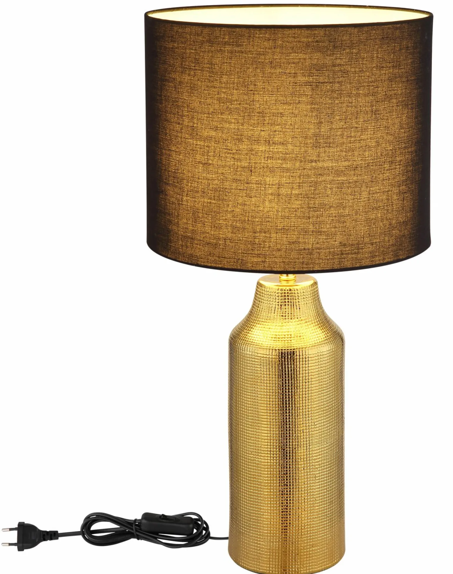 Die Elden Tischleuchte kombiniert zeitloses Design mit moderner Eleganz. Gefertigt aus hochwertiger Keramik, beeindruckt sie mit ihrer schwarz goldfarbenen Oberfläche. Die Leuchte ist 61 cm hoch und hat einen Durchmesser von 30,5 cm, wodurch sie sowohl in kleinen als auch in großen Räumen einen stilvollen Akzent setzt. Das edle Design sorgt für eine angenehme Lichtatmosphäre, die jeden Raum in ein warmes und einladendes Ambiente taucht. Diese Tischleuchte ist ideal für Wohn-, Schlaf- oder Arbeitszimmer und bietet eine perfekte Balance von Funktionalität und Ästhetik.