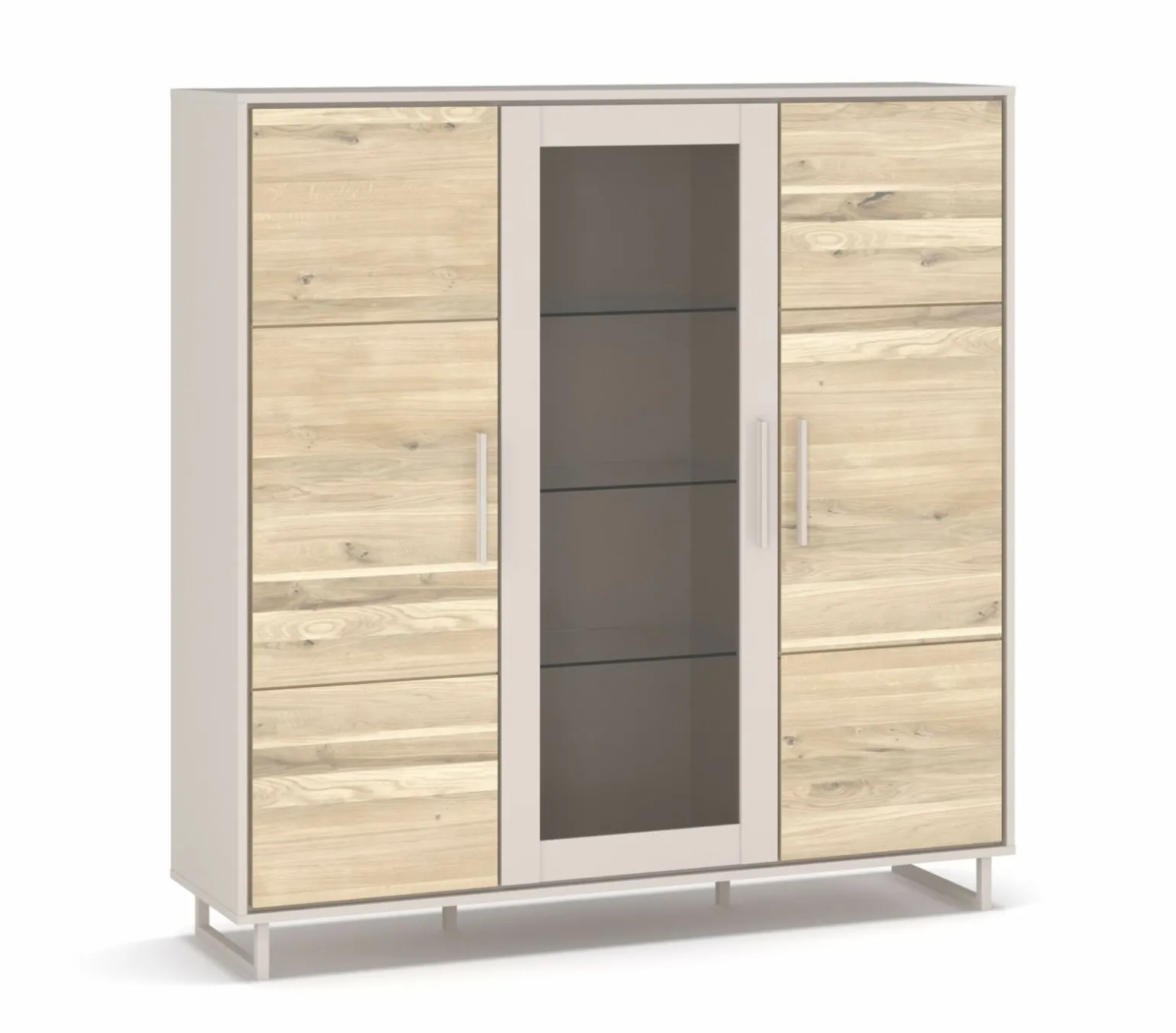 Das Highboard Genua 5804 vereint modernes Design mit Funktionalität und ist ein wahrer Hingucker für Ihr Zuhause. Gefertigt aus teilmassivem Holz, bietet es eine elegante und langlebige Lösung für Ihre Aufbewahrungsbedürfnisse. Mit einer Höhe von 147 cm, einer Breite von 146 cm und einer Tiefe von 40 cm passt es perfekt in verschiedene Wohnbereiche, ohne viel Platz einzunehmen. Die graue Farbgebung harmoniert hervorragend mit dem stabilen Metallgestell, das dem Highboard einen Hauch von industriellem Flair verleiht. Entdecken Sie die perfekte Kombination aus Stil und Zweckmäßigkeit.