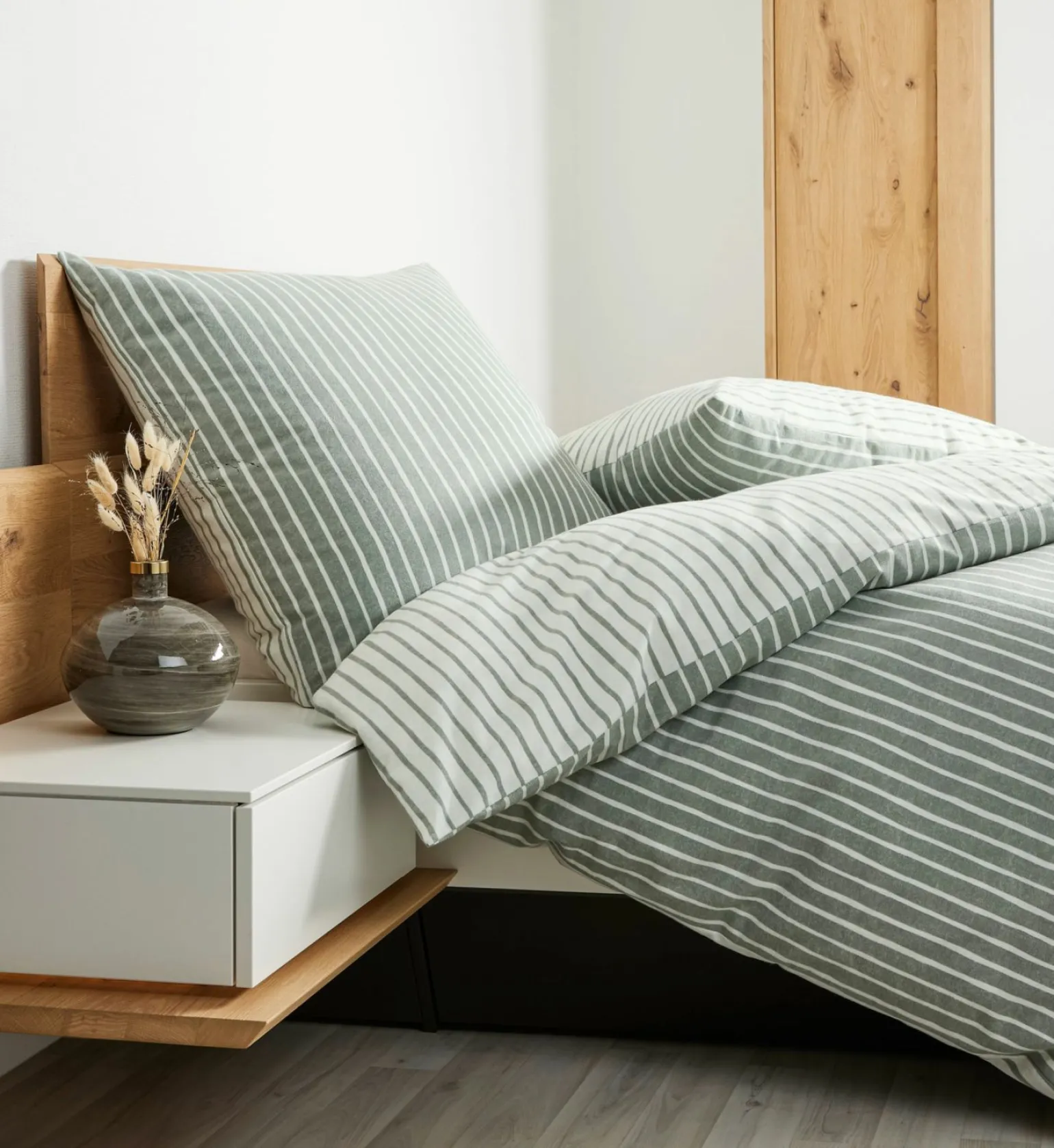 Davos Biber-Bettwäsche aus Baumwolle in Salbeigrün