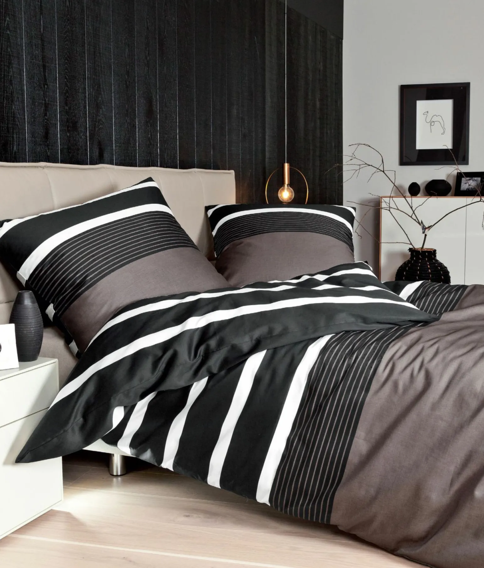 J.D. Nougat-Schwarz Mako-Satin-Bettwäsche