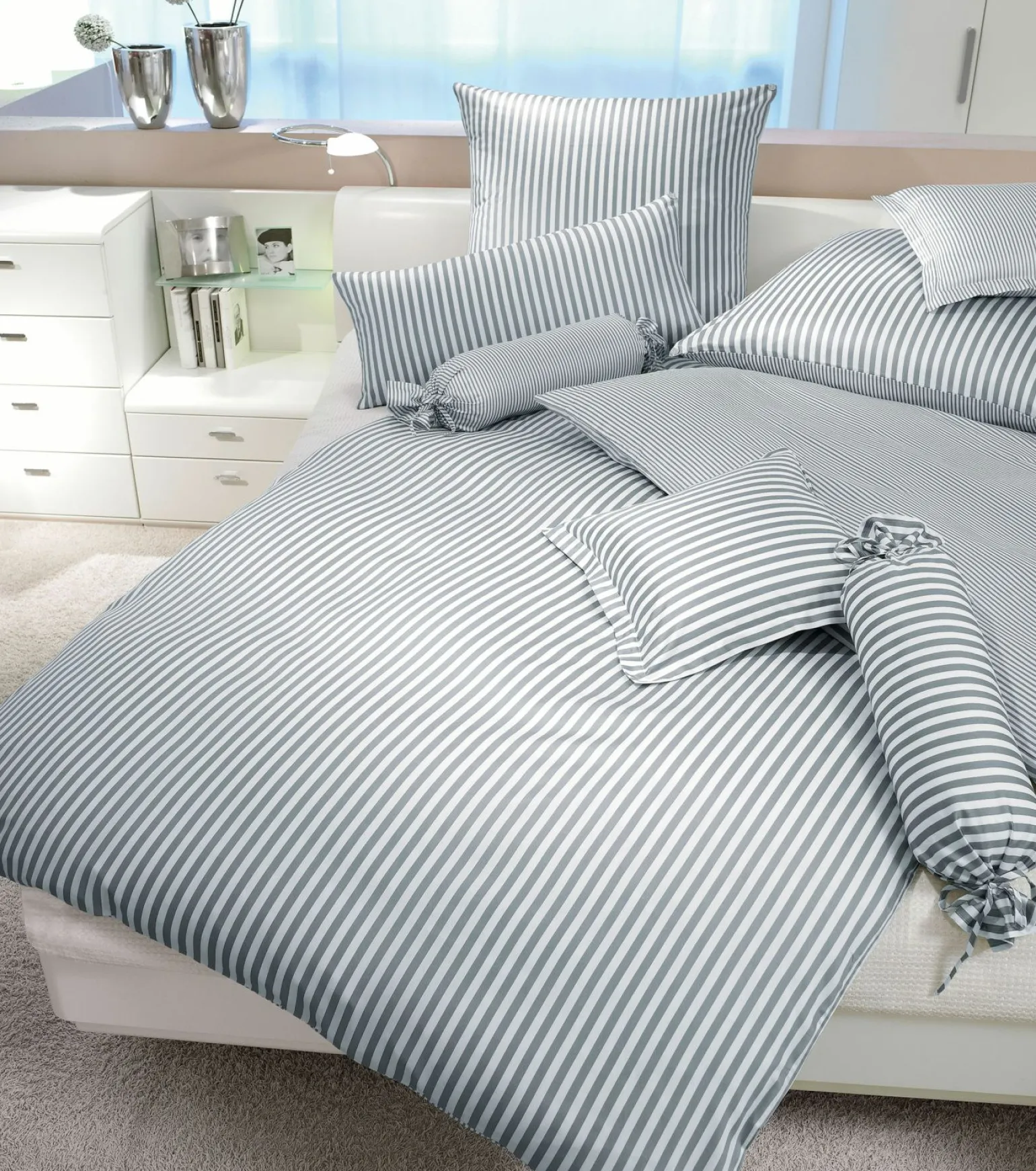 Modernclassic Grau Mako-Satin-Bettwäsche
