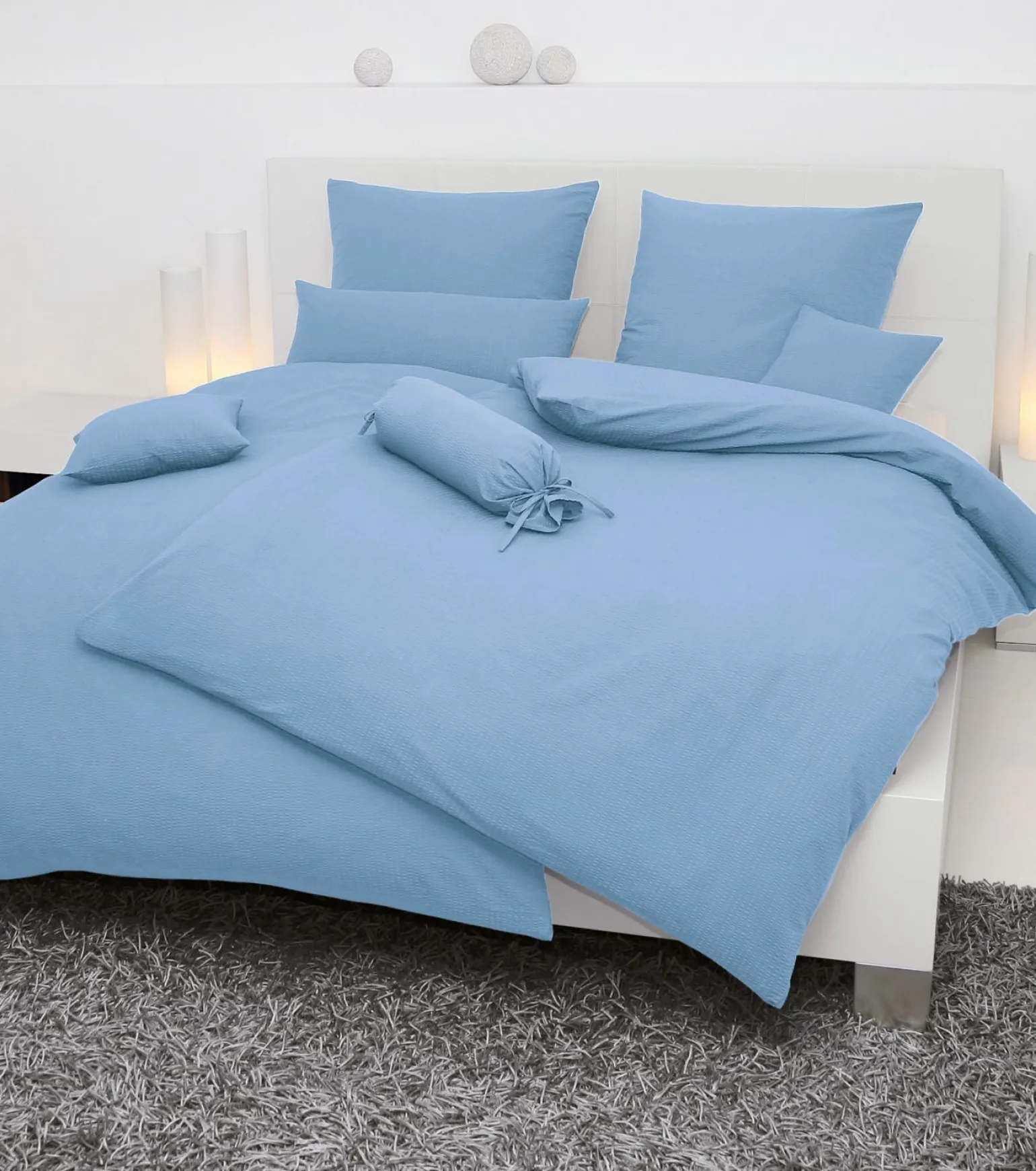 125 Piano bleu Seersucker-Kissenbezug Baumwolle