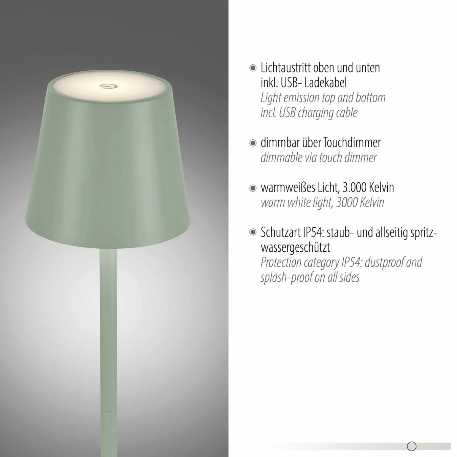 JUST LIGHT LED-Akku-Tischleuchte 1flg grün