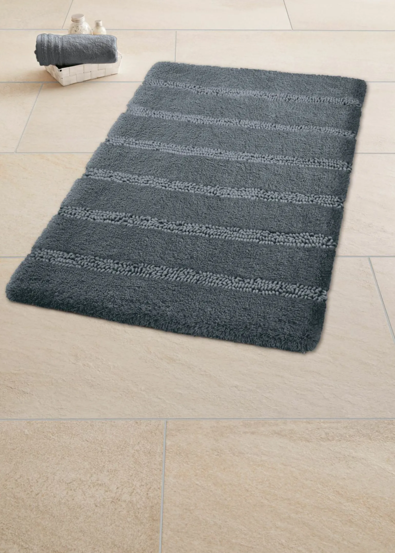 Der Monrovia Badteppich vereint funktionales Design mit stilvoller Eleganz und ist aus hochwertigem Polyester gefertigt. Mit einer großzügigen Breite von 70 cm und einer Länge von 120 cm bietet dieser Teppich ausreichend Platz und Komfort in Ihrem Badezimmer. Die Kunstfasern sorgen nicht nur für ein weiches Gefühl unter den Füßen, sondern sind auch besonders pflegeleicht und langlebig. Der schieferfarbene Ton verleiht Ihrem Raum eine moderne und zeitlose Note. Eine Investition in Qualität und Stil, die Ihr Badezimmer aufwertet und für Wohlfühlatmosphäre sorgt.