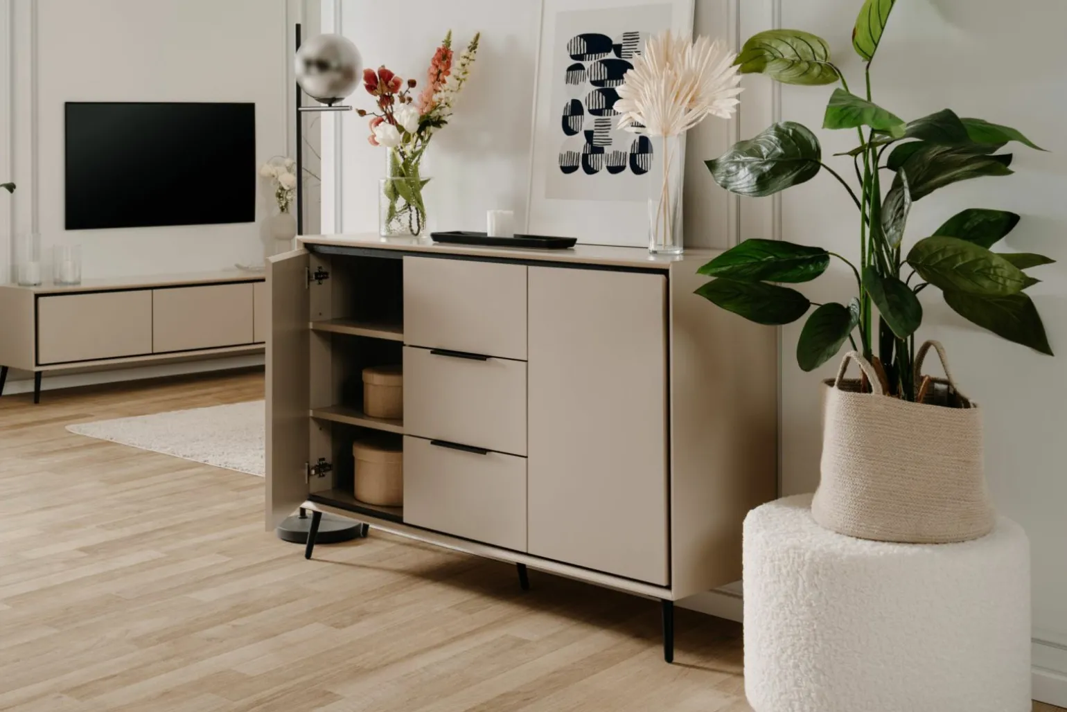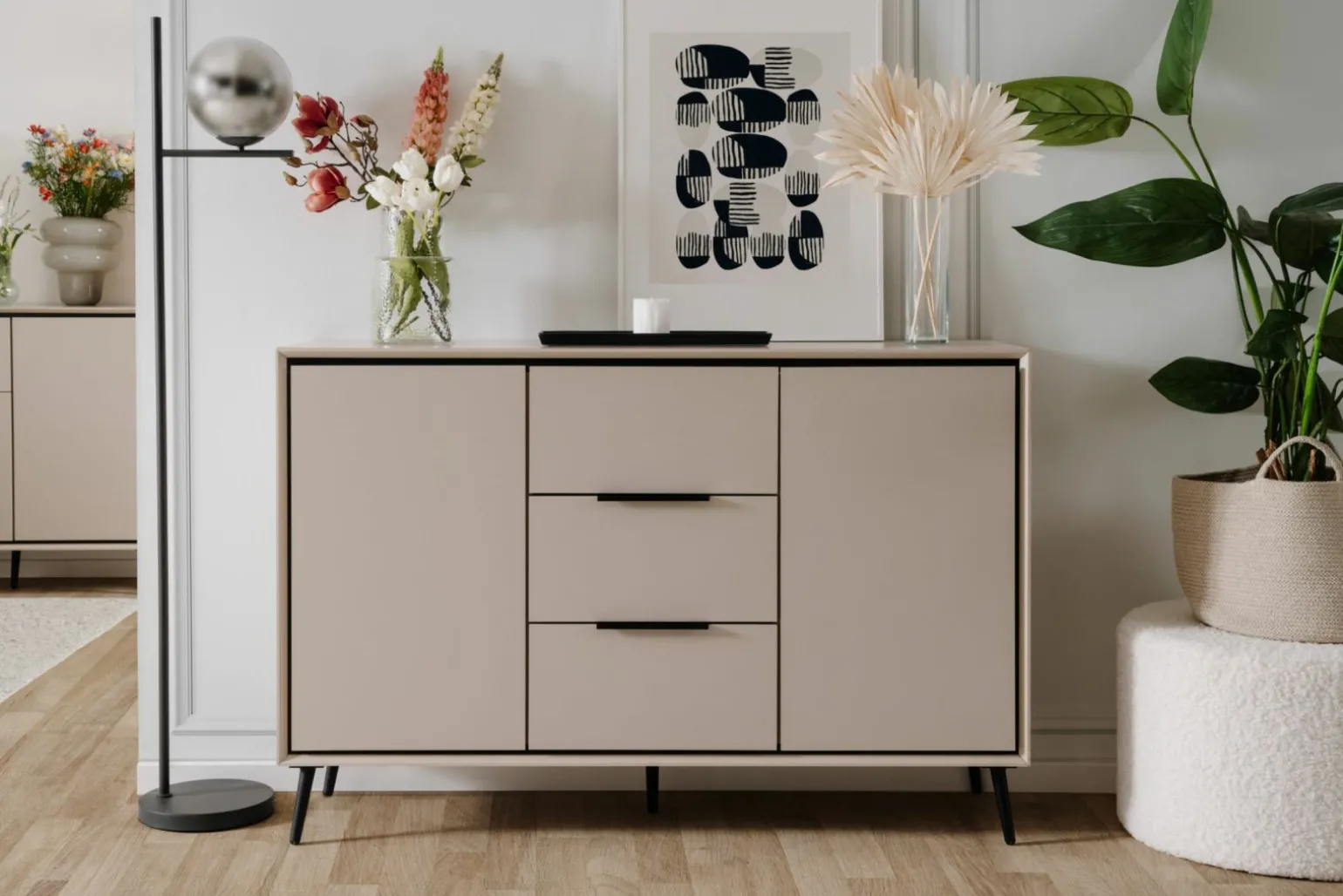 2 Türen, 3 Schubkästen