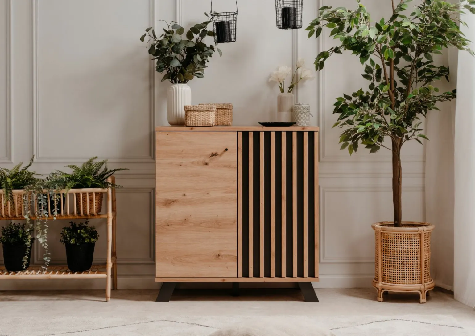 Die Medan Kommode vereint modernen Stil mit funktionalem Design und ist die perfekte Ergänzung für Ihre Wohnräume. Gefertigt aus robustem Holzfaserwerkstoff, bietet dieses Möbelstück eine stilvolle Möglichkeit, Ihre Gegenstände zu organisieren. Die Kommode präsentiert sich in einer eleganten braun-schwarzen Farbgebung, die sich harmonisch in moderne Einrichtungsstile einfügt. Mit einer Höhe von 80 cm und einer Breite von 85 cm passt sie hervorragend in verschiedene Raumkonzepte. Die maximale Belastbarkeit liegt bei 10 kg, ideal für leichte bis mittelschwere Gegenstände. Entdecken Sie die Kombination aus Ästhetik und Funktionalität.