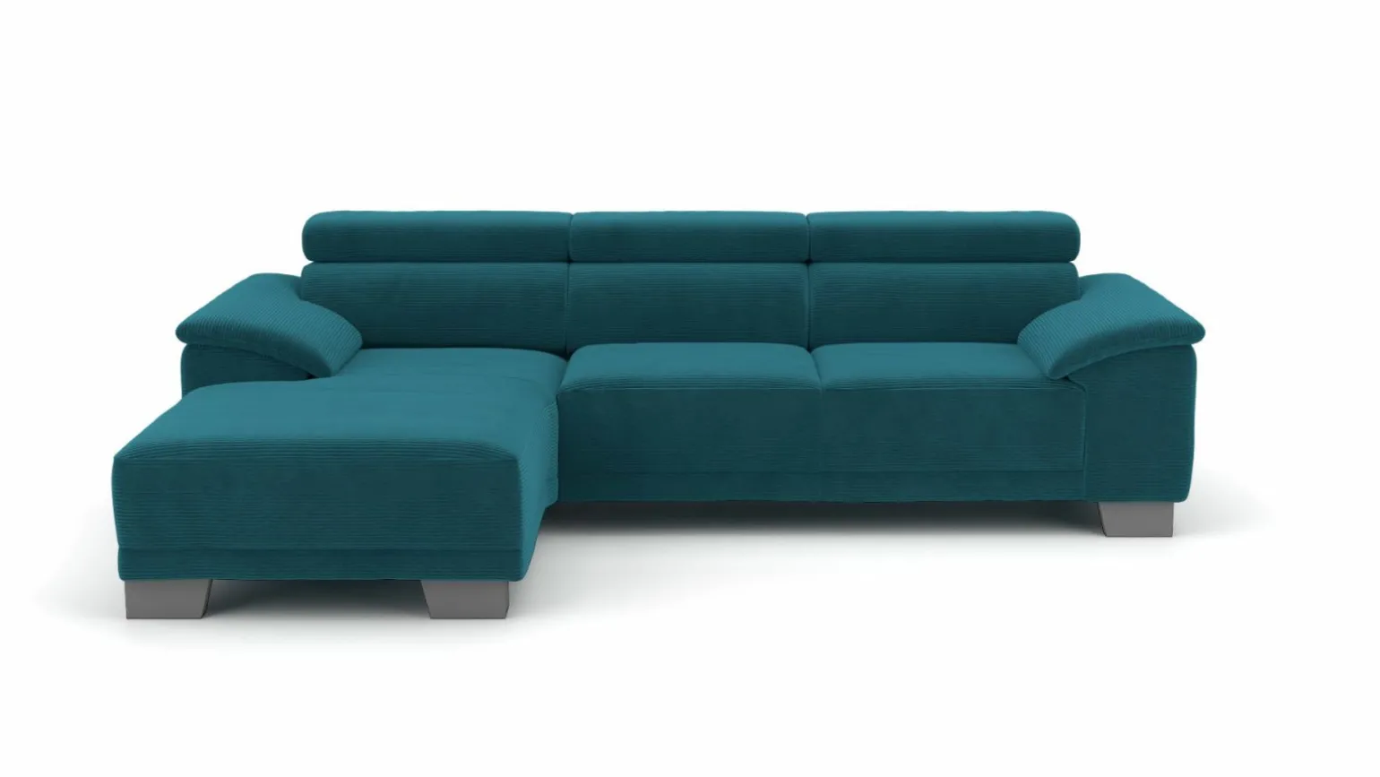 Diese moderne Eckgarnitur Akron in stilvollem Blau ist die perfekte Ergänzung für jedes zeitgemäße Wohnzimmer. Mit einer großzügigen Breite von 270 cm und einer Tiefe von 174 cm bietet sie ausreichend Platz für bis zu vier Personen. Der weiche Stoffbezug sorgt für ein angenehmes Sitzgefühl, während die komfortable Sitzhöhe von 45 cm und die Sitztiefe von 57 cm optimalen Komfort bieten. Der Echtrücken ermöglicht es, die Garnitur frei im Raum zu platzieren. Die stabilen Metallfüße verleihen der Eckgarnitur ein elegantes Finish und garantieren Langlebigkeit.