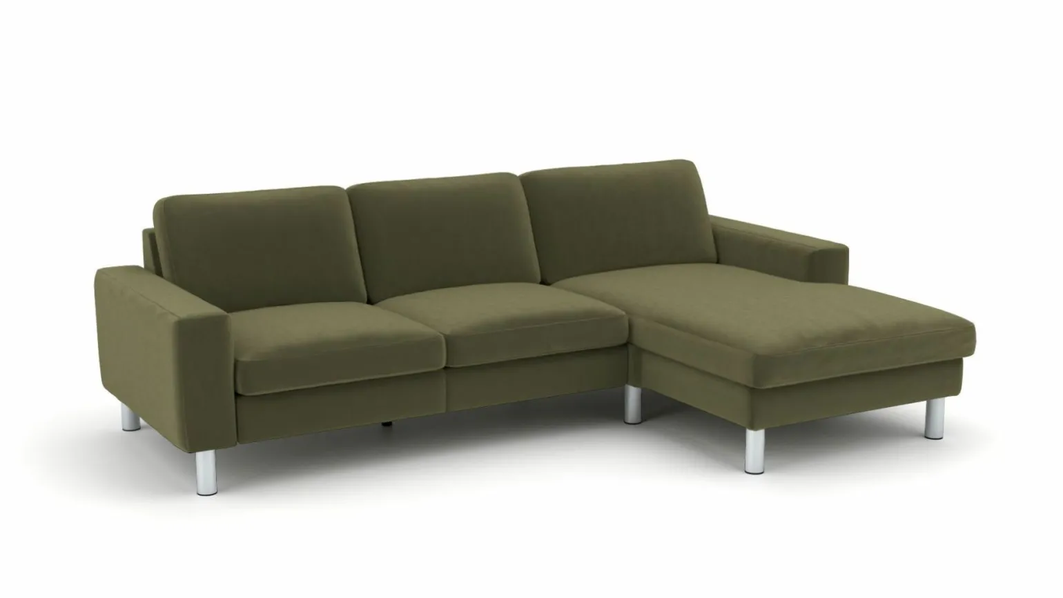 Die moderne Eckgarnitur Chance in einem frischen Grünton ist ein stilvolles Highlight für Ihr Wohnzimmer. Mit einer Breite von 258 cm und einer Tiefe von 162 cm bietet sie großzügigen Platz für bis zu vier Personen. Der hochwertige Stoffbezug sorgt für ein angenehmes Sitzgefühl, während die Sitzhöhe von 45 cm und die Sitztiefe von 56 cm optimalen Komfort bieten. Die stabilen Metallfüße verleihen dem Möbelstück einen eleganten Look und garantieren Langlebigkeit. Dank des Echtrückens kann die Garnitur frei im Raum platziert werden und setzt in jedem Raum einen modernen Akzent.