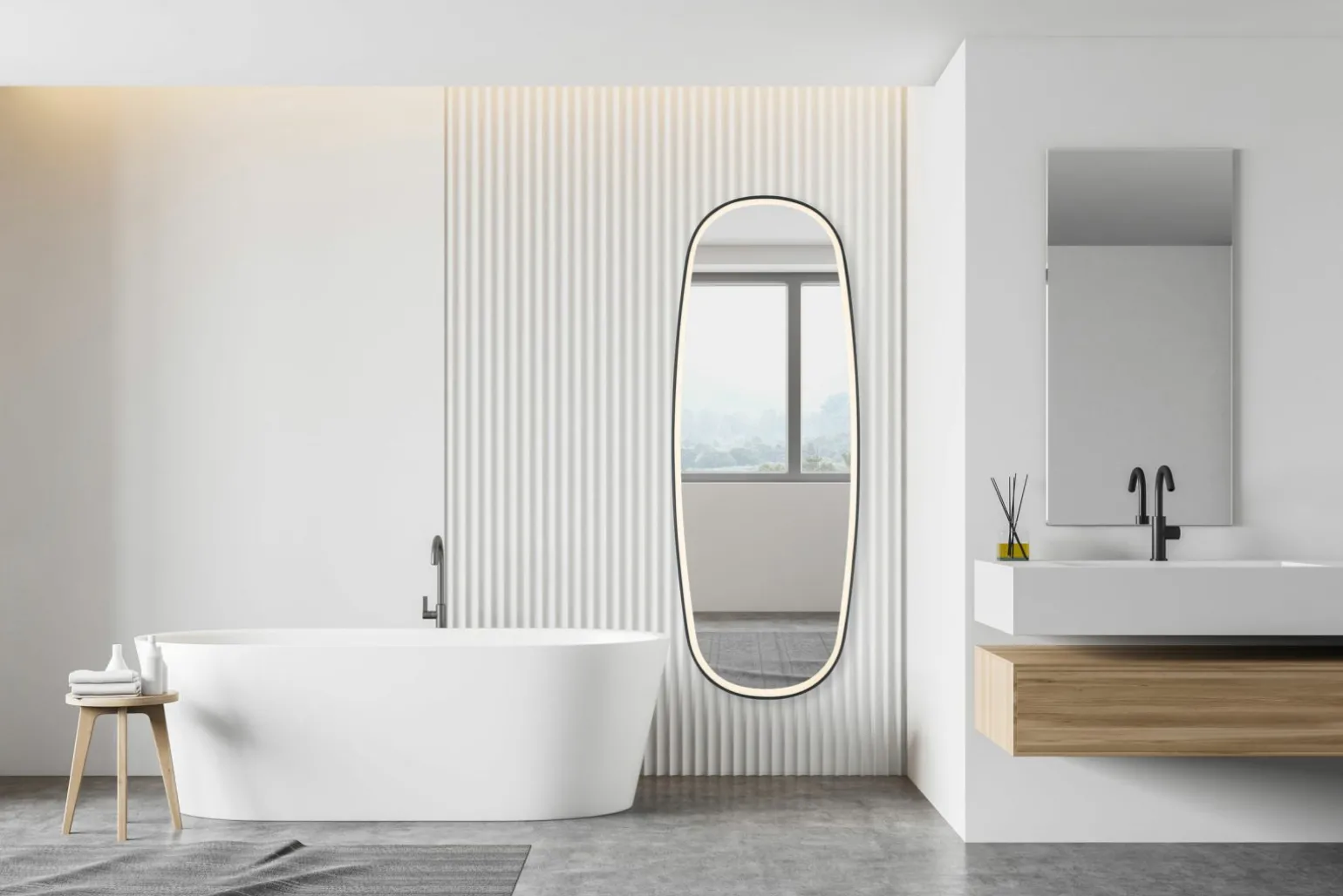 Erleben Sie elegantes Design und Funktionalität mit dem Lichtspiegel Diana 1980202 in stilvollem Schwarz. Dieser beeindruckende Spiegel aus hochwertigem Glas ist nicht nur ein ästhetischer Blickfang, sondern auch ein praktisches Highlight für Ihr Zuhause. Mit einer Höhe von 160 cm und einer Breite von 60 cm bietet er ausreichend Fläche, um Ihr Spiegelbild perfekt einzufangen. Die Tiefe von 4 cm sorgt für eine schlanke Silhouette, die sich nahtlos in jeden Raum einfügt. Ob im Badezimmer, Flur oder Schlafzimmer – dieser Spiegel verleiht jedem Raum einen Hauch von Luxus.
