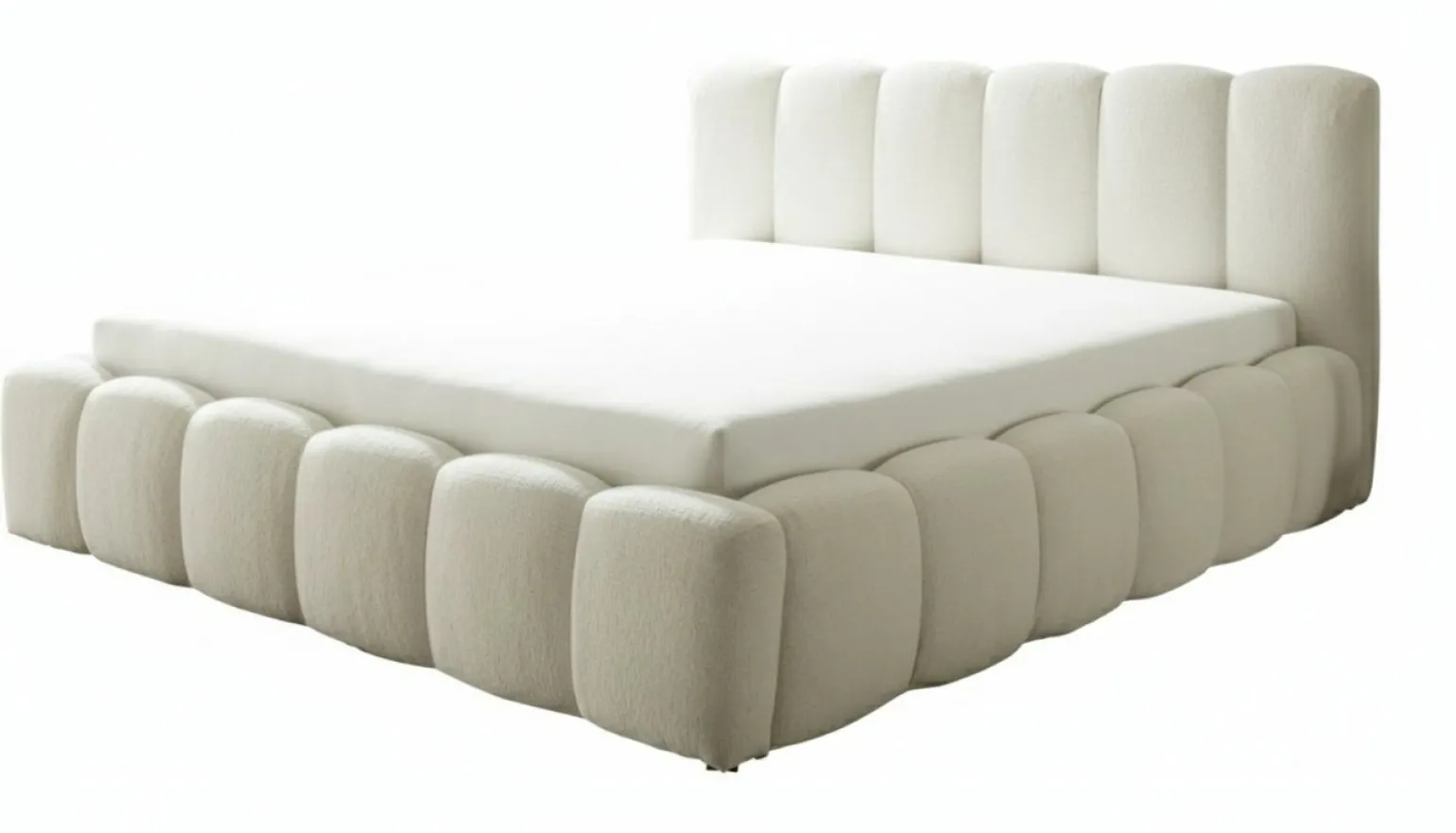 Farbe: Weiß Material: Stoff Höhe: 103 cm Integrierter Bettkasten Liegefläche: 180×200 cm Elegantes Design