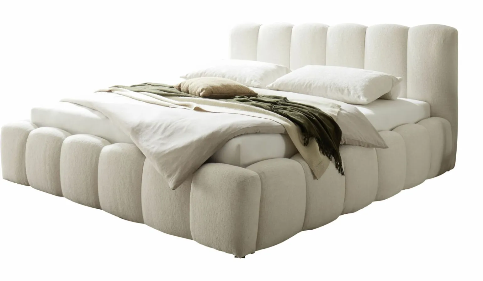 Farbe: Weiß Material: Stoff Höhe: 103 cm Integrierter Bettkasten Liegefläche: 180×200 cm Elegantes Design“>Liv’in Avesta Polsterbett Weiß