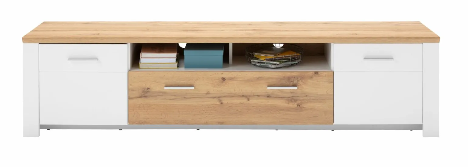 Das Liv’in Matera TV-Unterteil beeindruckt durch seine harmonische Kombination aus Funktionalität und stilvollem Design. Mit einer Höhe von 51 cm und einer Breite von 209 cm bietet dieses rechteckige Möbelstück aus hochwertigem Holzdekor ausreichend Platz für Ihre Unterhaltungselektronik. Die Tiefe von 46 cm sorgt dafür, dass es sich perfekt in Ihr Wohnzimmer integriert. Der mehrfarbige Look verleiht Ihrem Raum eine moderne und lebendige Atmosphäre, während die stabile Konstruktion für Langlebigkeit sorgt. Dieses TV-Unterteil ist die ideale Lösung, um Ordnung und Stil in Ihrem Heimkino zu vereinen.