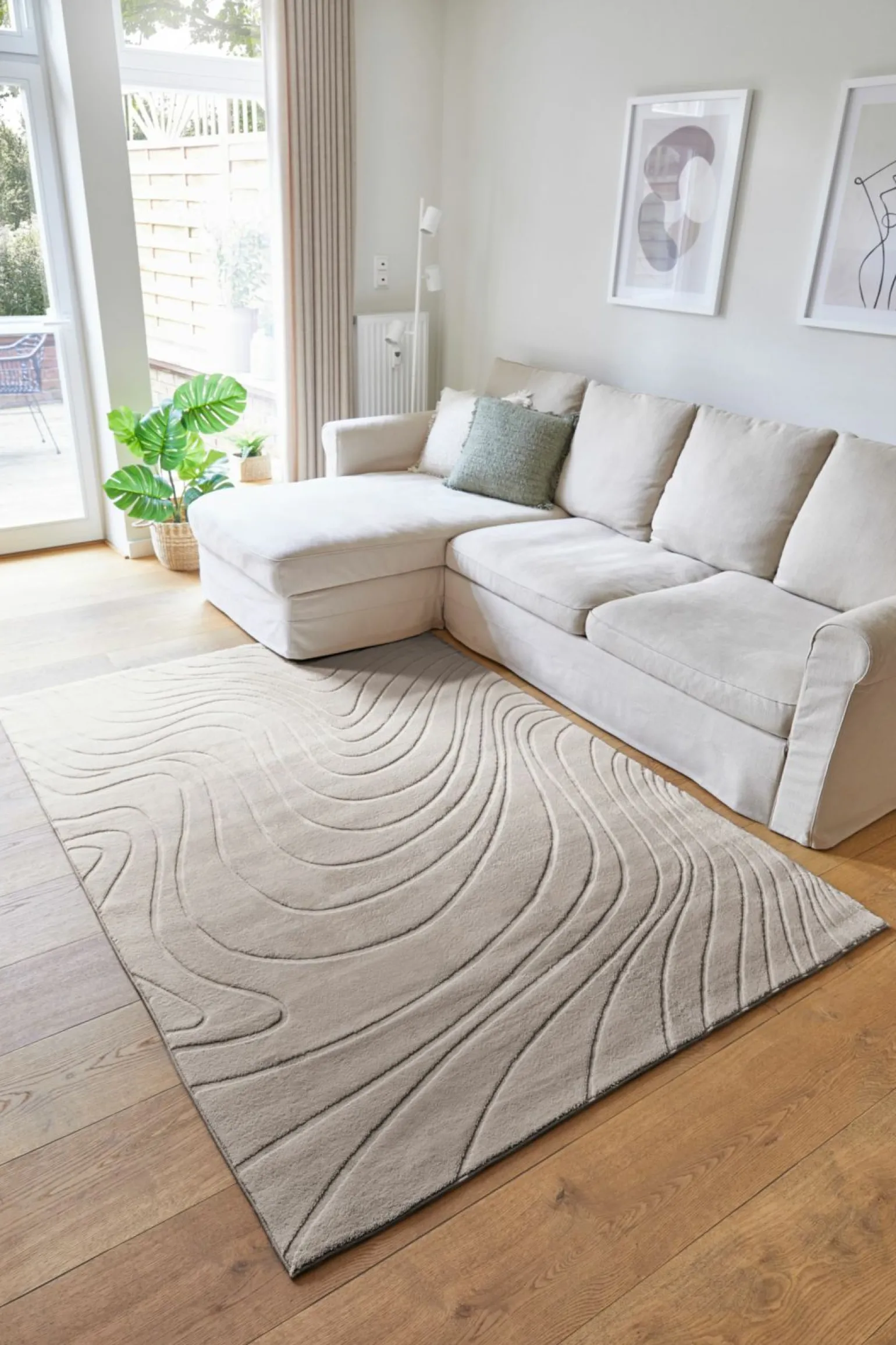 Der DALE Wellenmuster Webteppich in elegantem silber grau ist ein stilvolles Highlight für jedes moderne Zuhause. Mit seiner rechteckigen Form und einer beeindruckenden Größe von 160 cm Breite und 230 cm Länge bietet er großzügige Abdeckung und definiert Räume auf ansprechende Weise. Die Hochtief-Struktur verleiht dem Teppich eine besondere Haptik, während das Design in Kombination mit Kunstfasern aus 70% Baumwolle und 30% Polyester für Langlebigkeit sorgt. Dieser Teppich ist ideal, um Ihrem Wohnbereich eine moderne, designorientierte Note zu verleihen und gleichzeitig Komfort und Stil zu vereinen.