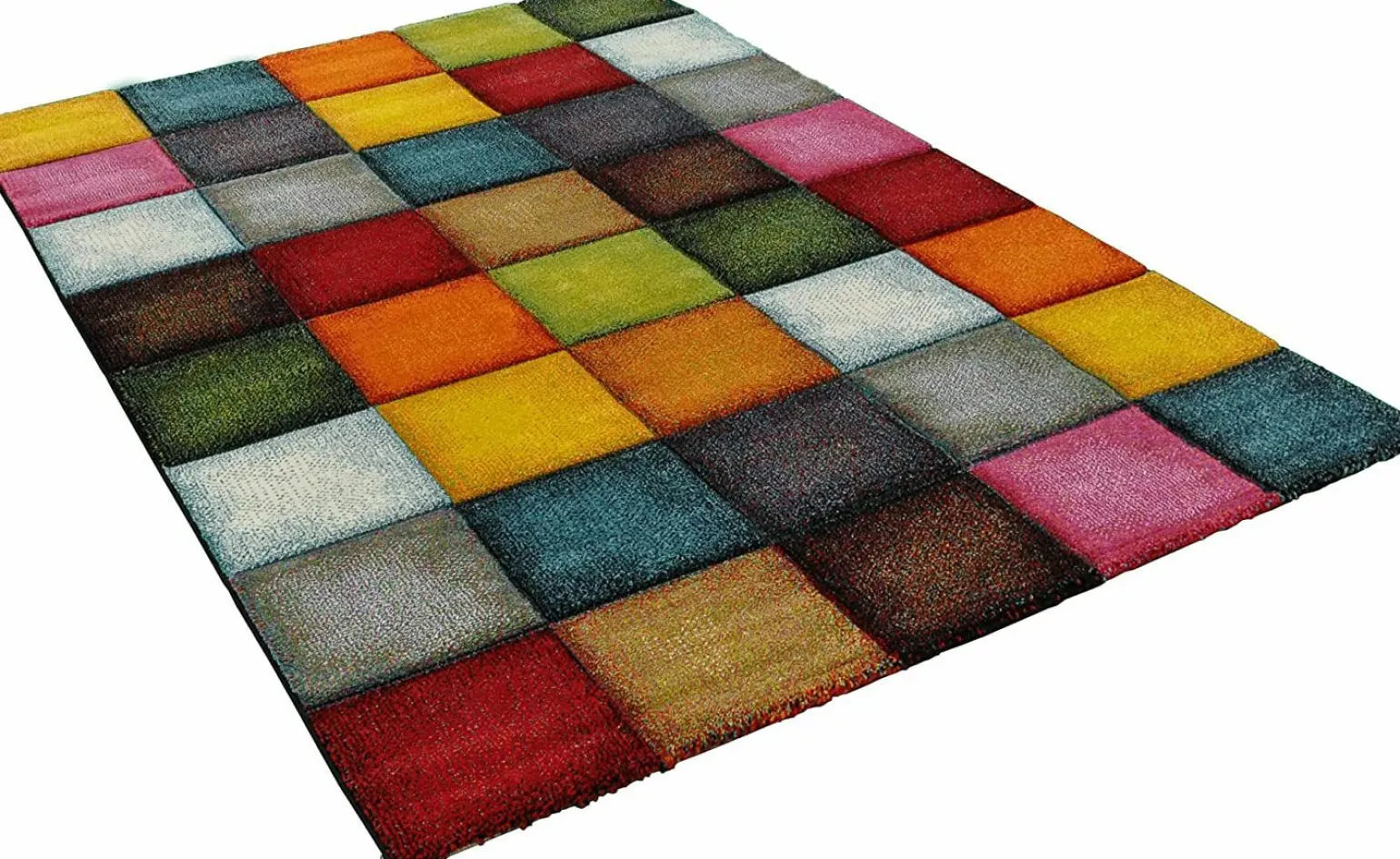 Moderner Webteppich Karo bunt aus Kunstfasern