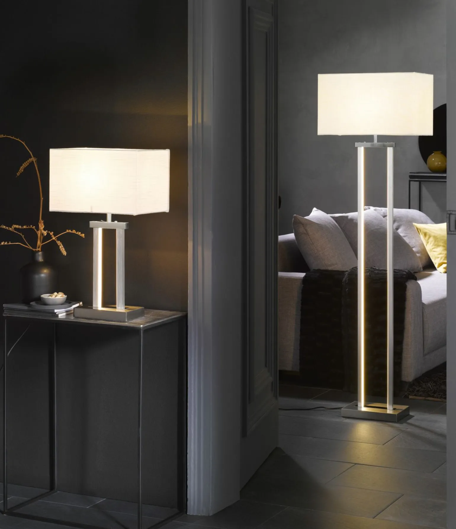 Die elegante MONDO Domo LED-Tischleuchte bringt modernen Stil und funktionale Beleuchtung auf Ihren Tisch. Mit einer Höhe von 55 cm, einer Breite von 32 cm und einer Tiefe/Länge von 20 cm fügt sie sich nahtlos in verschiedene Raumgestaltungen ein. Der dreiflammige Aufbau sorgt für eine gleichmäßige Lichtverteilung, die sowohl für Arbeits- als auch für Wohnbereiche ideal ist. Gefertigt aus hochwertigem Metall in zeitlosem Weiß, bietet diese Leuchte nicht nur Langlebigkeit, sondern auch eine ästhetische Ergänzung für Ihre Einrichtung. Verleihen Sie Ihrem Raum ein harmonisches Ambiente mit dieser stilvollen Tischleuchte.