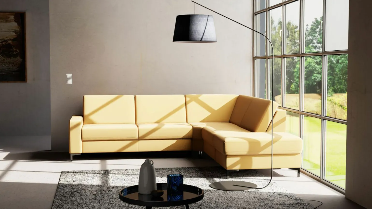 Die MONDO Maestra Polstergarnitur vereint modernen Stil mit auffälligem Design in leuchtendem Gelb. Diese elegante Garnitur aus hochwertigem Leder bietet nicht nur exquisite Optik, sondern auch hervorragenden Komfort. Mit einer großzügigen Breite von 270 cm und einer Tiefe von 243 cm bringt sie Luxus in jeden Wohnraum. Die Sitzhöhe beträgt 46 cm und die Sitztiefe 53 cm, was ideal für entspannte Stunden ist. Die beeindruckende Höhe von 85 cm verleiht der Garnitur eine markante Präsenz. Verleihen Sie Ihrem Wohnbereich eine stilvolle Note mit dieser exquisiten Garnitur.