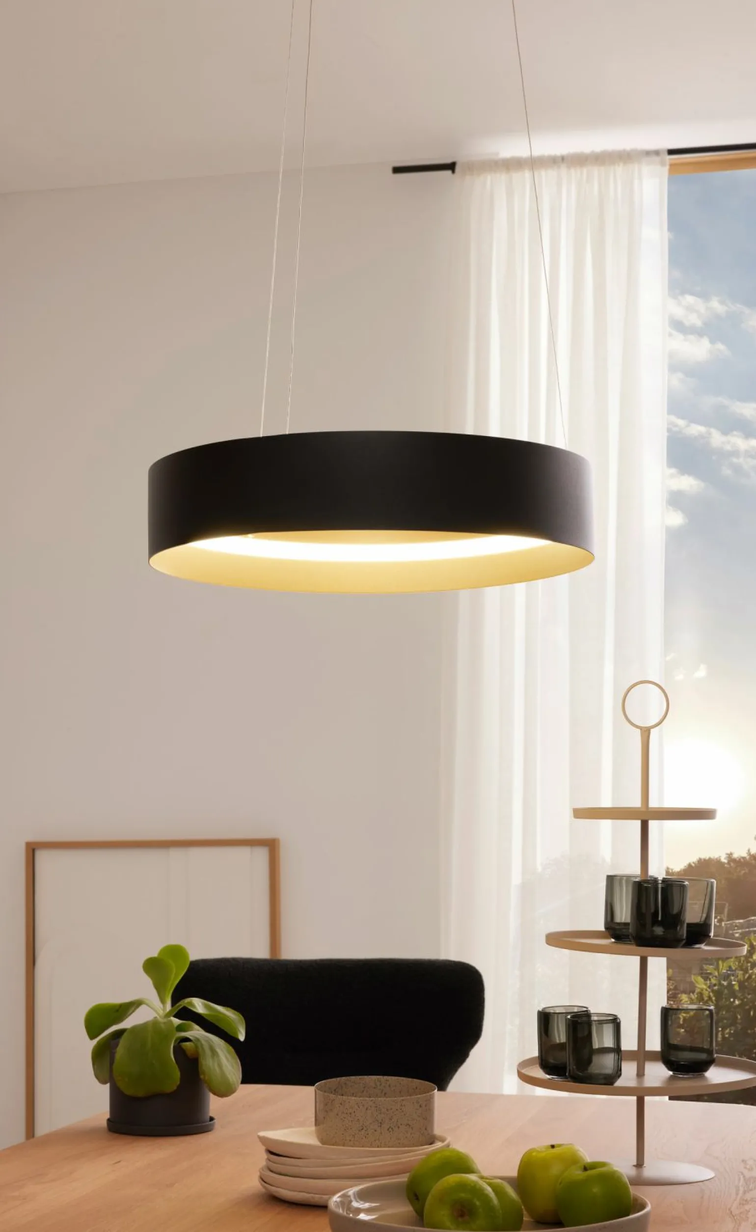 Erleben Sie zeitgemäße Eleganz mit der LOOP LED-Pendelleuchte in edlem Schwarz-Gold. Diese moderne Leuchte aus hochwertigem Metall beeindruckt mit ihrem minimalistischen Design und einem Durchmesser von 50 cm. Die LOOP ist perfekt für stilvolle Wohnräume, in denen sie als Blickfang dient und ein angenehmes Licht verbreitet. Trotz ihrer imposanten Erscheinung fügt sie sich harmonisch in verschiedene Einrichtungsstile ein. Die LED-Technologie sorgt für eine energieeffiziente Beleuchtung und lange Lebensdauer, während das moderne Design Ihrem Raum ein luxuriöses Ambiente verleiht.