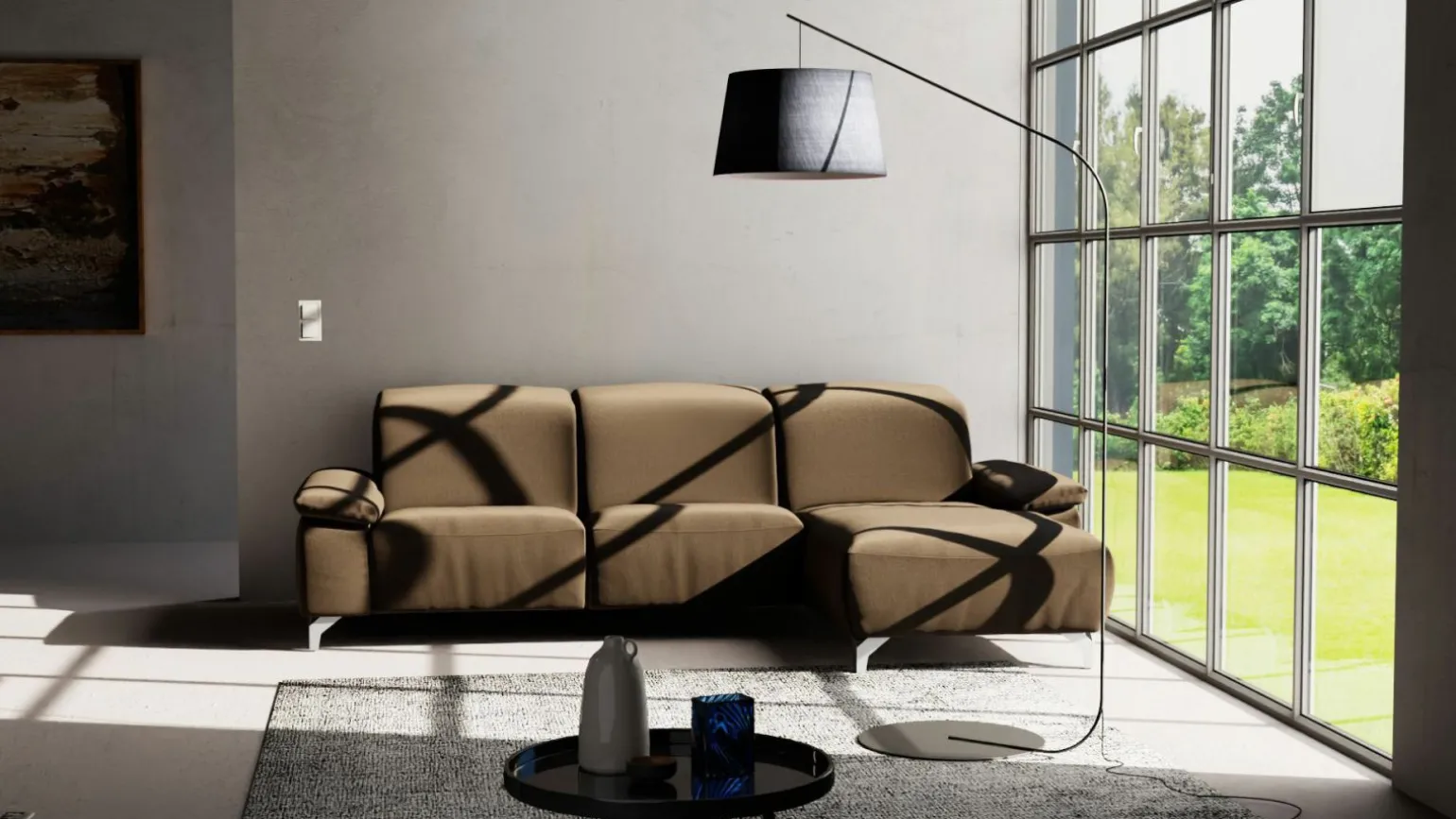 Verleihen Sie Ihrem Wohnzimmer mit der modernen Polstergarnitur MR 370 einen eleganten Touch. Diese stilvolle Garnitur in edlem Braun besticht durch ihren hochwertigen Stoff, der nicht nur ästhetisch ansprechend, sondern auch langlebig ist. Die komfortable Sitzhöhe von 47 cm und die großzügige Sitztiefe von 56 cm bieten Ihnen ultimativen Komfort, ideal für entspannte Abende oder gesellige Runden. Diese Polstergarnitur verbindet zeitgenössisches Design mit funktionalem Komfort, perfekt für jedes moderne Zuhause.