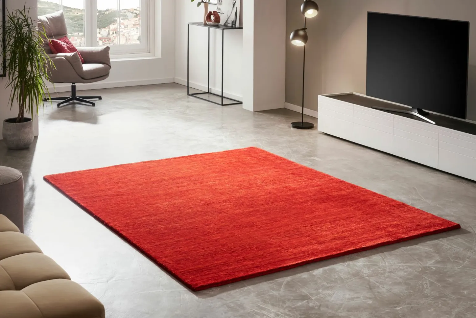 Der moderne Handwebteppich Menton in elegantem Rot verleiht jedem Raum eine stilvolle und einladende Atmosphäre. Mit einer großzügigen Breite von 140 cm und einer Länge von 200 cm bietet er ausreichend Fläche, um als beeindruckender Blickfang zu dienen. Gefertigt aus hochwertigem Mischgewebe, bestehend aus 80% Schurwolle und 20% Baumwolle, besticht dieser Teppich durch seine Strapazierfähigkeit und natürlichen Komfort. Die rechteckige Form und der moderne Stil fügen sich harmonisch in verschiedene Einrichtungskonzepte ein, während die intensive Farbe für einen lebendigen Akzent sorgt. Entdecken Sie die perfekte Kombination aus Design und Funktionalität.