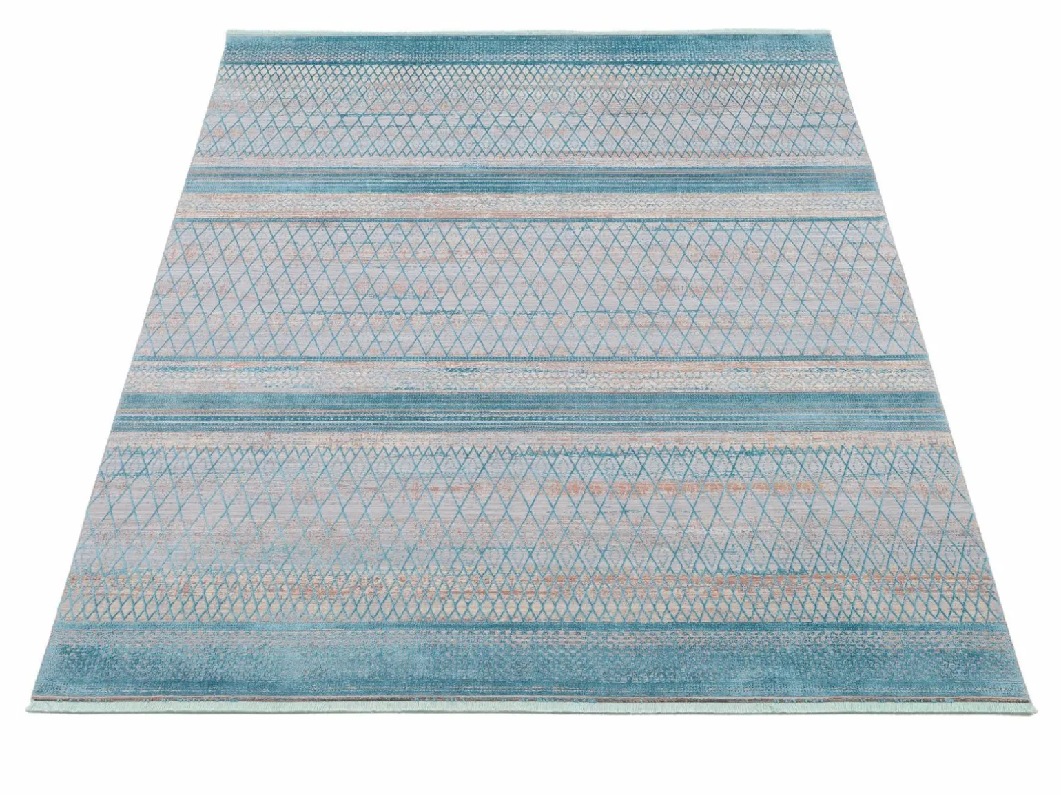 FOKUS Moderner Webteppich Beige Blau Grün