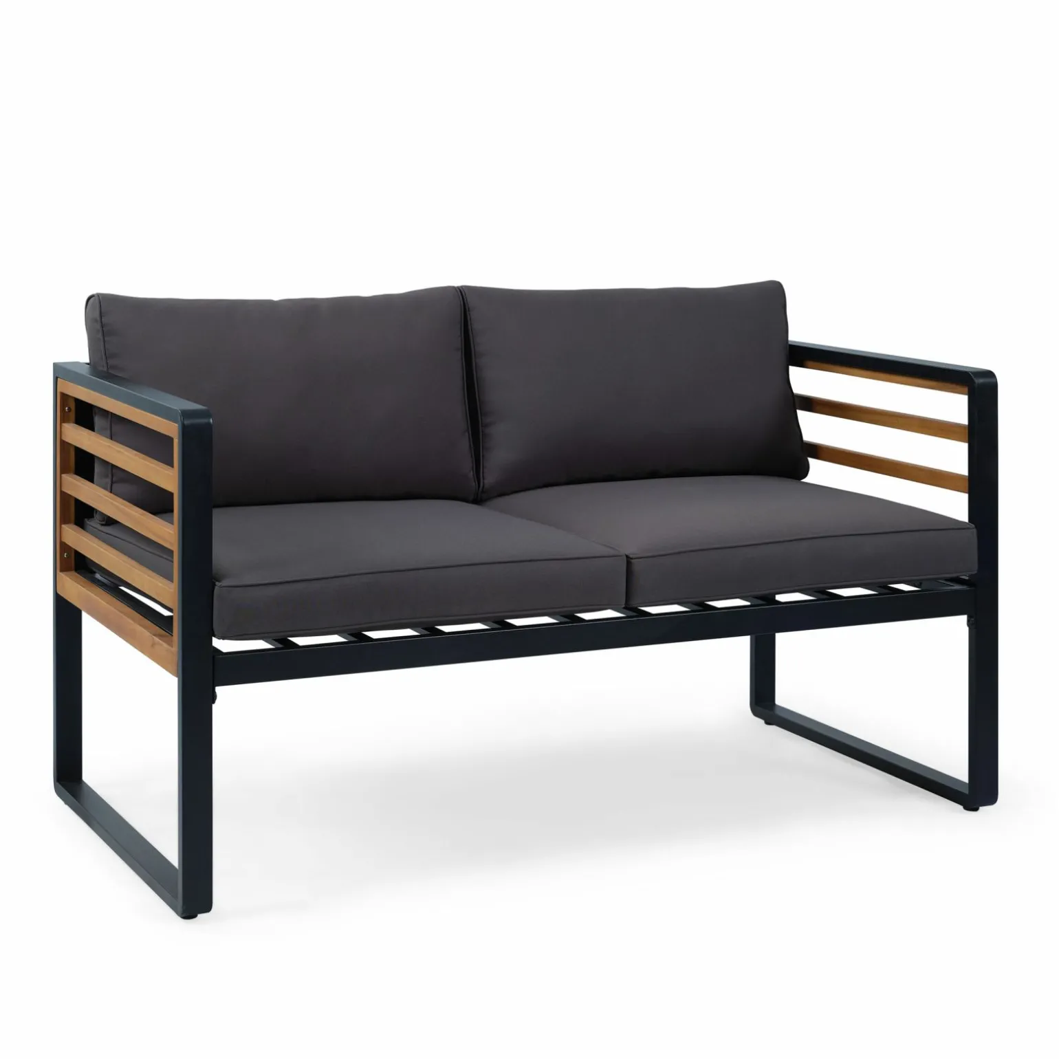 Akazienholz,Polster dunkelgrau
