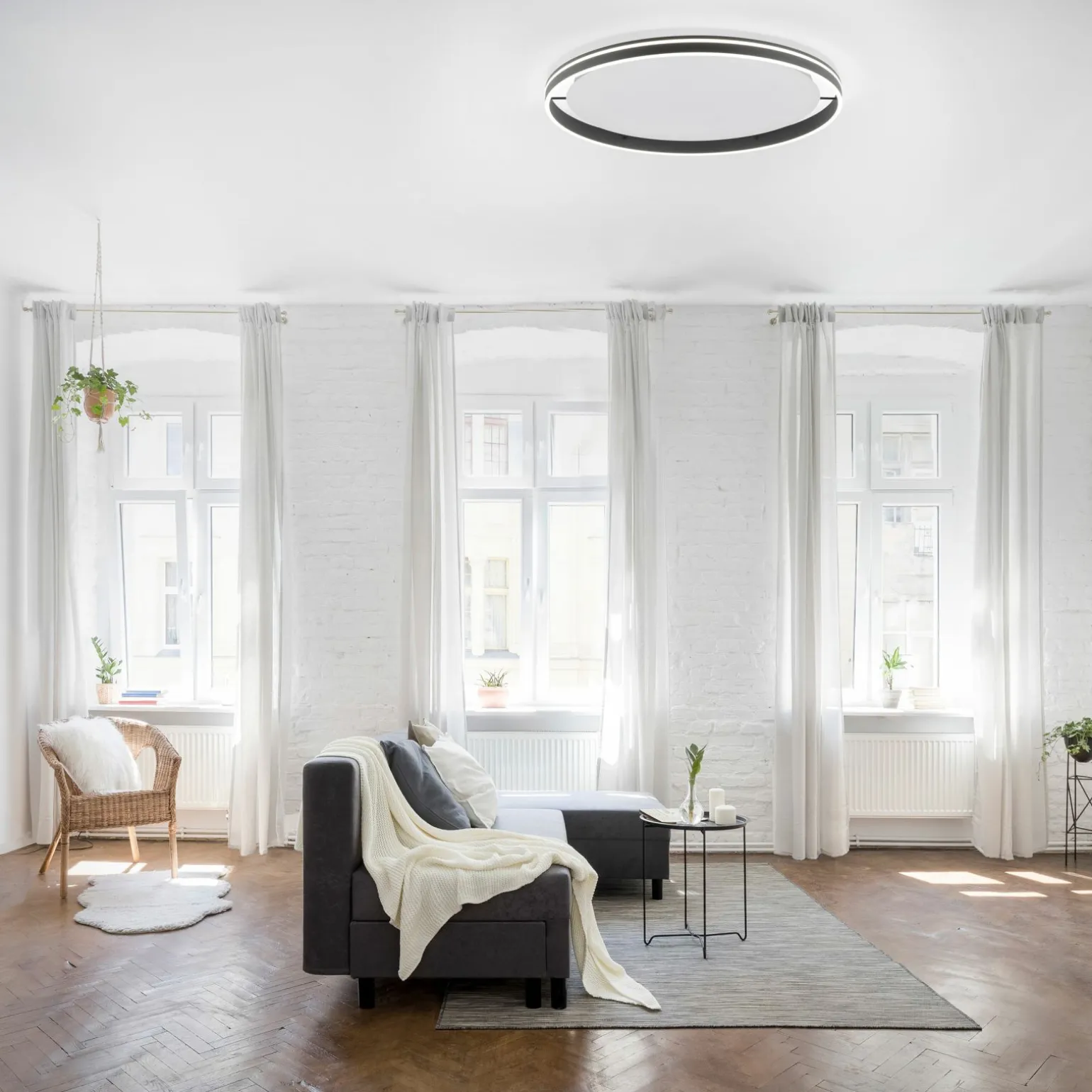 Die Q-VITO LED-Deckenleuchte in elegantem Schwarz setzt stilvolle Akzente in Ihrem Wohnraum. Gefertigt aus hochwertigem Metall, bietet sie nicht nur Langlebigkeit, sondern auch eine moderne Optik. Mit einer Höhe von 8 cm und einem Durchmesser von 79,4 cm passt sie perfekt in größere Räume und sorgt für eine gleichmäßige Ausleuchtung. Die minimalistische Gestaltung macht sie zu einem vielseitigen Element, das sich harmonisch in verschiedene Einrichtungsstile einfügt. Entdecken Sie die perfekte Kombination aus Funktionalität und Design mit dieser eindrucksvollen Leuchte.