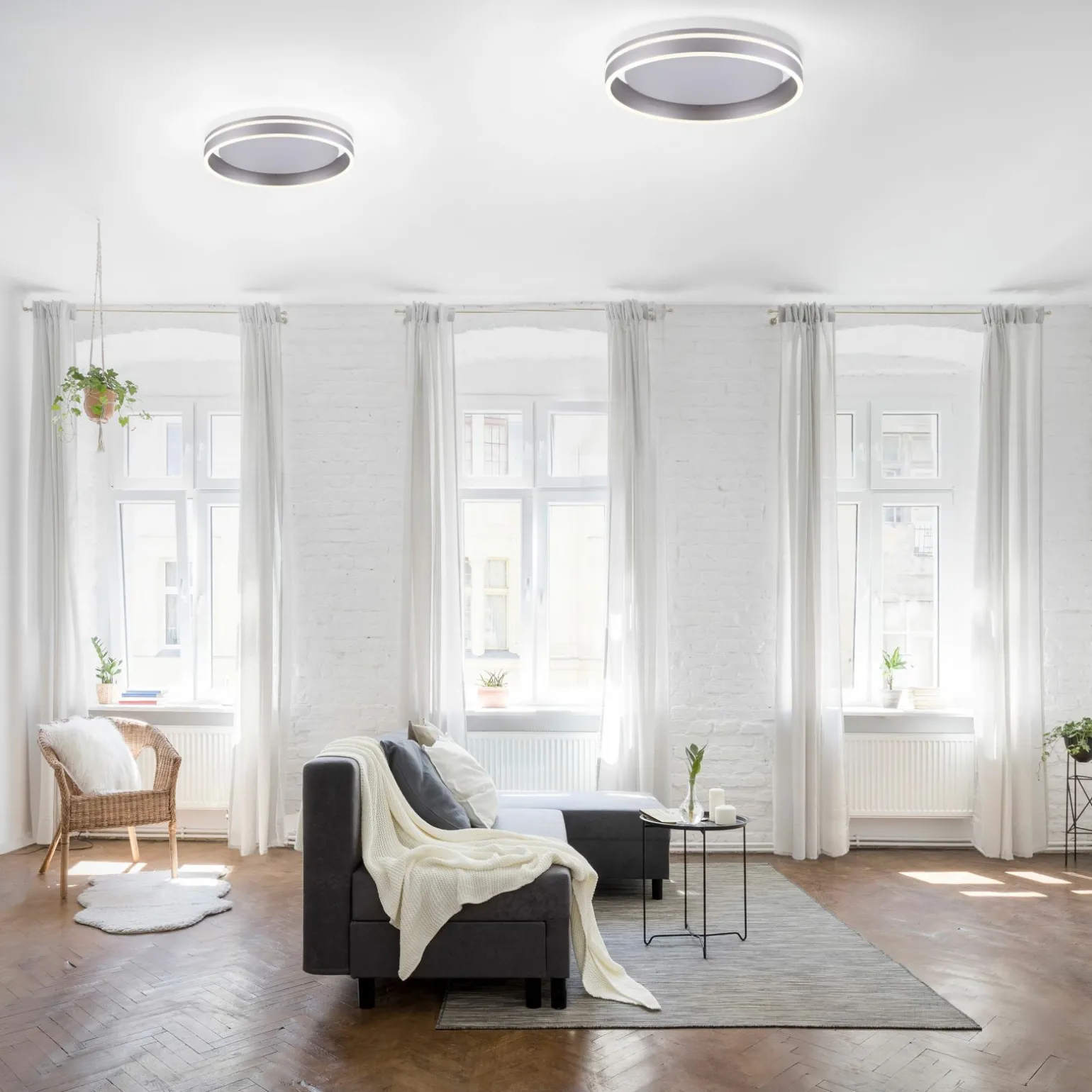 Entdecken Sie die elegante LED-Deckenleuchte Q-VITO, die in einem stilvollen Silber erstrahlt. Diese einflammige Leuchte ist nicht nur ein funktionales Beleuchtungsobjekt, sondern auch ein ästhetisches Highlight für jeden Raum. Gefertigt aus hochwertigem Metall, überzeugt sie mit einer modernen Optik und langlebiger Qualität. Mit einer Breite und einem Durchmesser von 40 cm sowie einer Höhe von 8 cm fügt sie sich harmonisch in Ihre Wohnräume ein. Die Q-VITO bietet nicht nur hervorragende Lichtverhältnisse, sondern auch ein zeitgemäßes Design, das Ihre Einrichtung perfekt ergänzt.