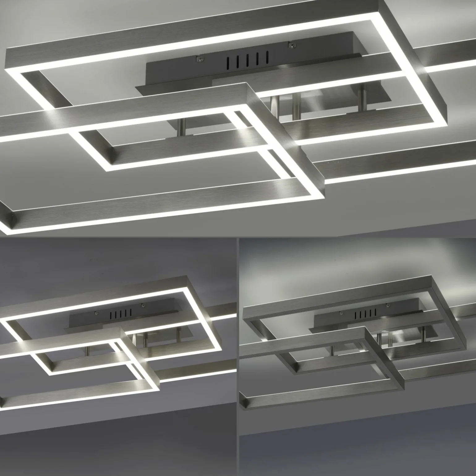 Verleihen Sie Ihrem Raum mit der eleganten Paan LED-Deckenleuchte einen modernen Touch. Diese zweiflammige Leuchte besticht durch ihr schlankes Design und die hochwertige Verarbeitung aus Metall, die sie besonders langlebig macht. In einem eleganten Silberton gehalten, fügt sie sich nahtlos in jedes Interieur ein. Mit einer Breite von 50 cm, einer Tiefe von 82 cm und einer Höhe von 13,9 cm eignet sie sich perfekt für große und kleine Räume. Die Paan LED-Deckenleuchte bietet eine blendfreie Beleuchtung und schafft eine angenehme Atmosphäre, die zum Verweilen einlädt.
