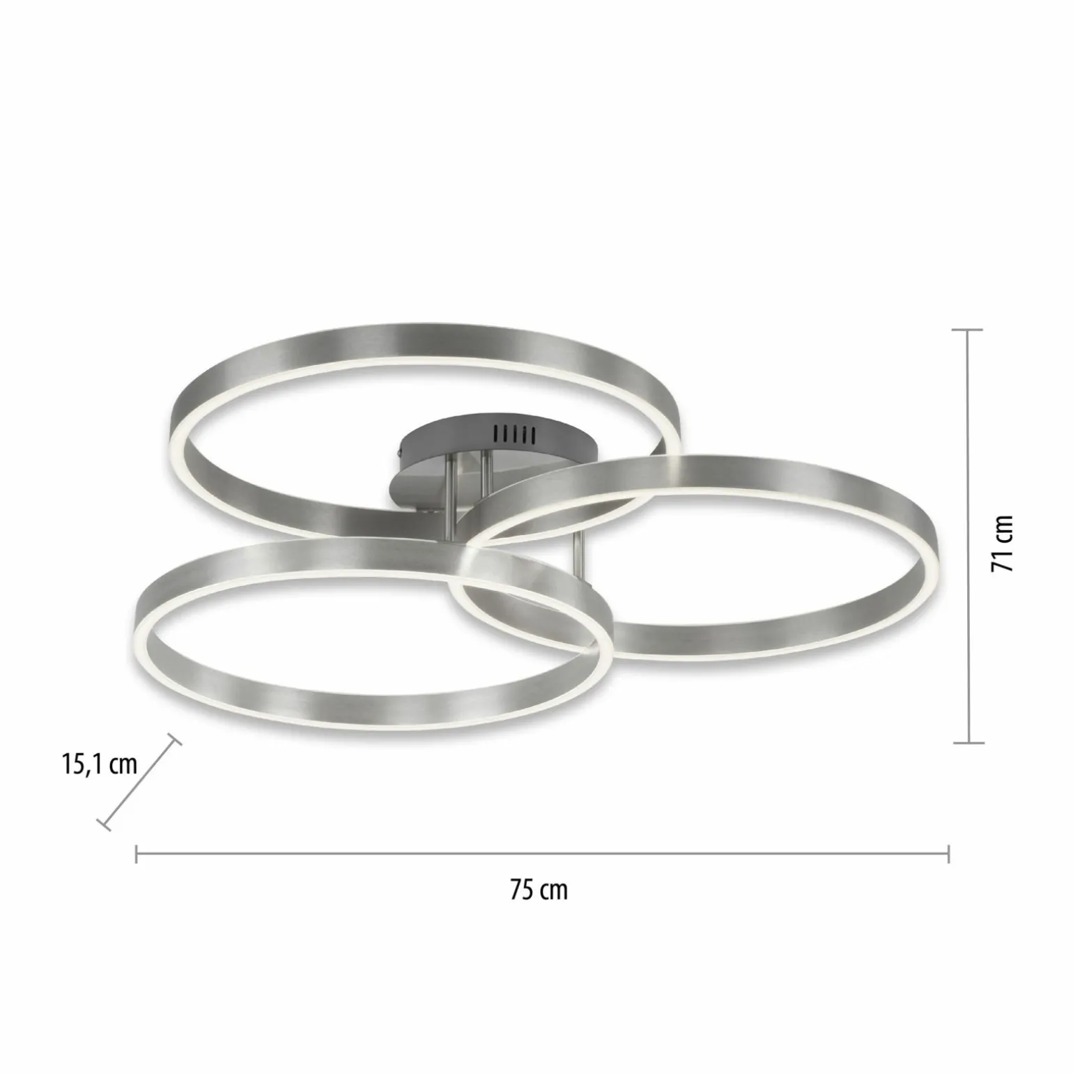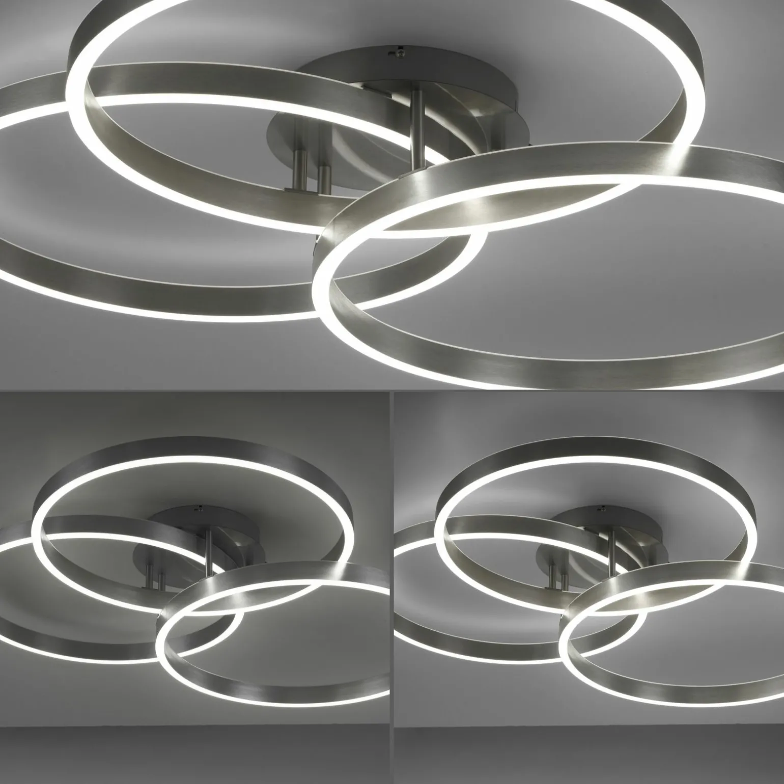 Die Paan LED-Deckenleuchte in elegantem Silber vereint modernes Design mit funktionaler Beleuchtung. Mit einer Breite von 71,1 cm und einer Tiefe von 75 cm ist sie ideal für größere Räume geeignet. Die Leuchte besteht aus hochwertigem Metall, das für Langlebigkeit und Stabilität sorgt. Die Bauhöhe von 15,1 cm ermöglicht eine dezente Integration in verschiedene Raumkonzepte. Diese zweiflammige Leuchte bietet eine hervorragende Lichtverteilung und sorgt für eine angenehme Atmosphäre in Ihrem Zuhause. Verleihen Sie Ihren Räumen einen stilvollen Touch mit dieser zeitlosen Deckenleuchte.