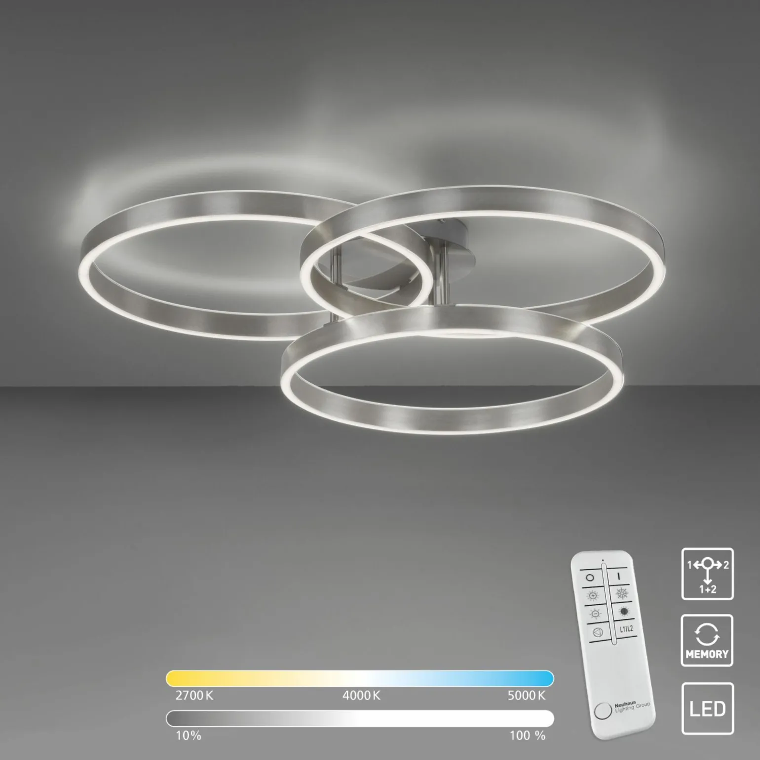 Paul Neuhaus LED-Deckenleuchte 2flg silberfarben